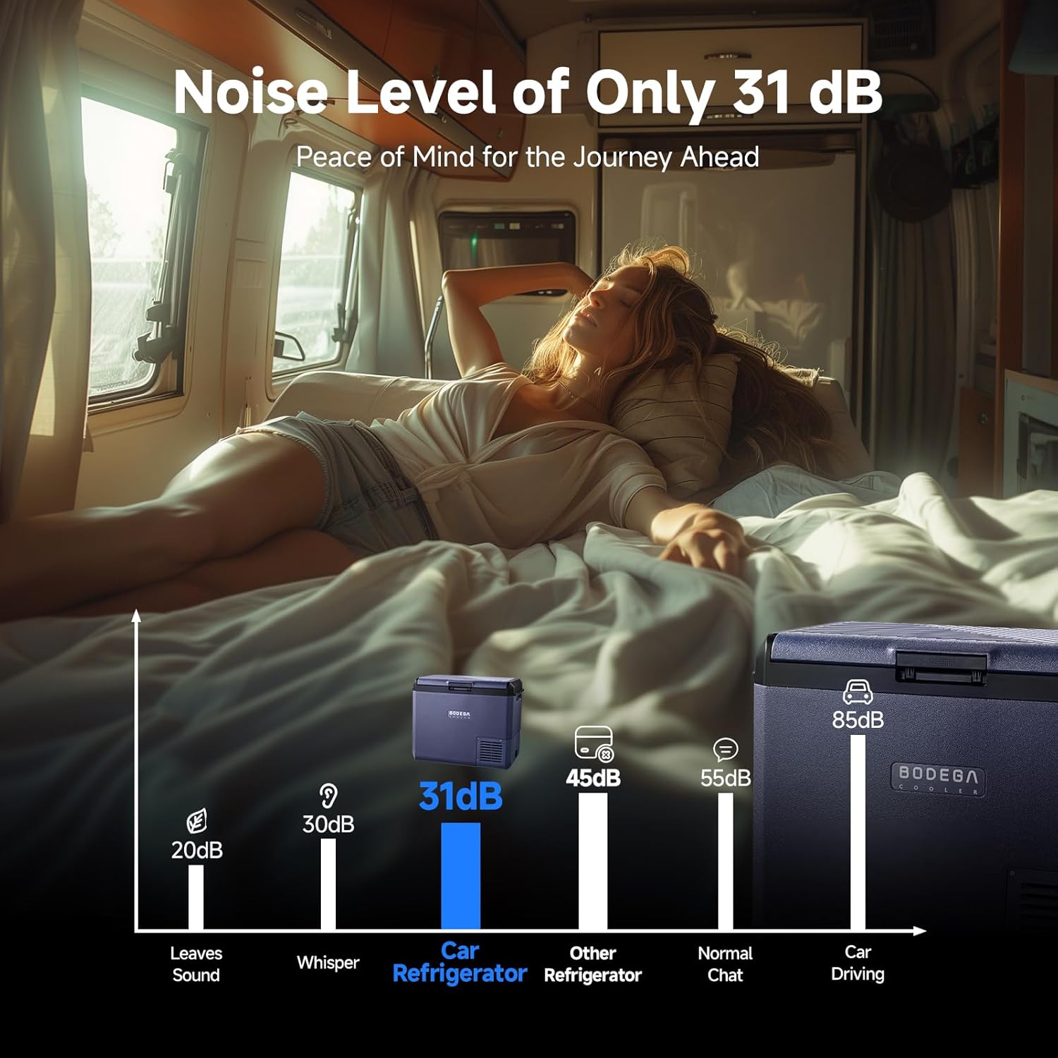 - 【𝗗𝘂𝗮𝗹 𝗖𝗼𝗼𝗹𝗶𝗻𝗴 𝗠𝗼𝗱𝗲𝘀 (𝗘𝗖𝗢/𝗠𝗔𝗫)】 Adapt to any adventure while balancing energy savings and rapid chilling - BodegaCooler 12v refrigerator lets you switch between MAX mode (15-minute drink cooling) and ECO mode (40% longer runtime), outperforming single-mode camping coolers.