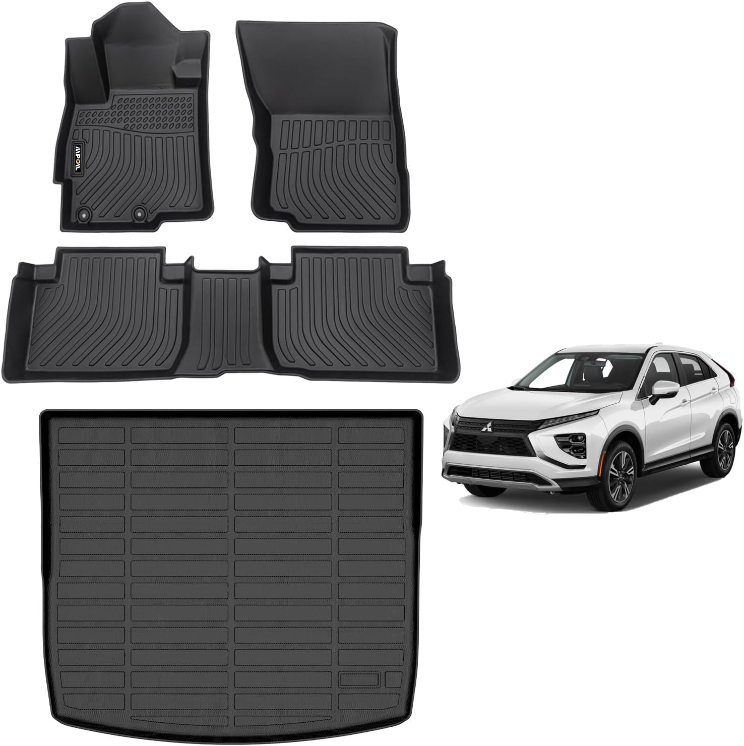 - 【CUSTOM FIT】AIPOIL Car Floor Mats and Cargo Liner Fit For Mitsubishi Eclipse Cross 2022 2023 2024 2025. Car floor mats include front row, rear row, and trunk liner. 3D scanning technology is used to accurately scan the original car data. Details such as the accelerator and brake have been paid to during the design, which will not affect driving.