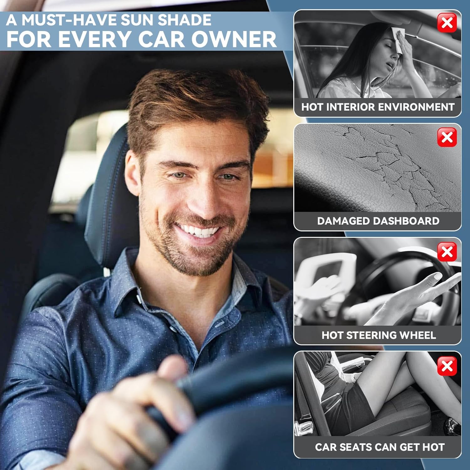 - 【Your Favorite Design 】The front window shade easily pops out and folds back. Storage pouch is included for easy portability,you will love this design,It is not hard for you to fold.Great heat shield interior+accessories for your car.