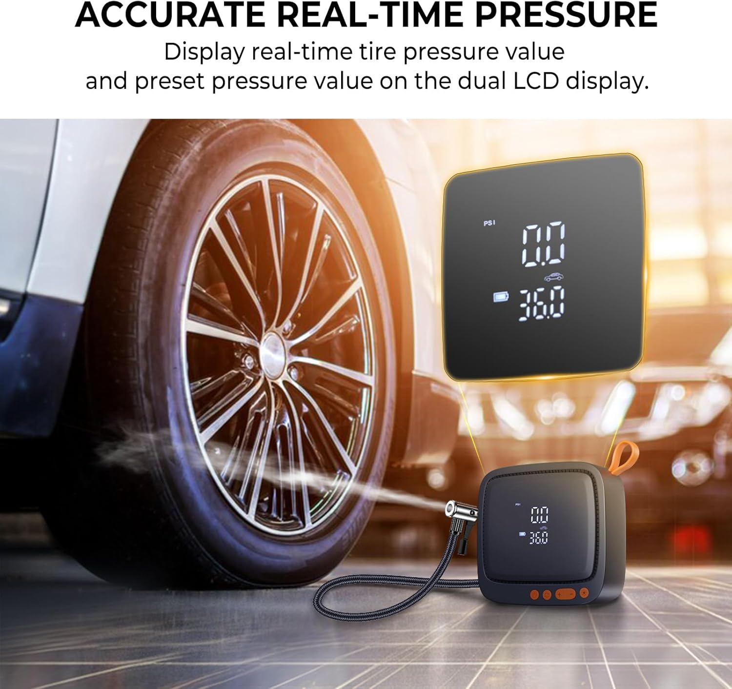 - ACCURATE INFLATION & AUTO SHUT-OFF: Equipped with advanced integrated pressure sensor continuously measuring and monitoring the tire pressure while inflating, and dual digital LCD Display to show the current real-time pressure value and preset value, Baiikforza AP22 digital tire inflator will automatically shut-off when preset pressure value is reached to prevent over-inflating and ensure peace of mind in use and drive safety back on the road!