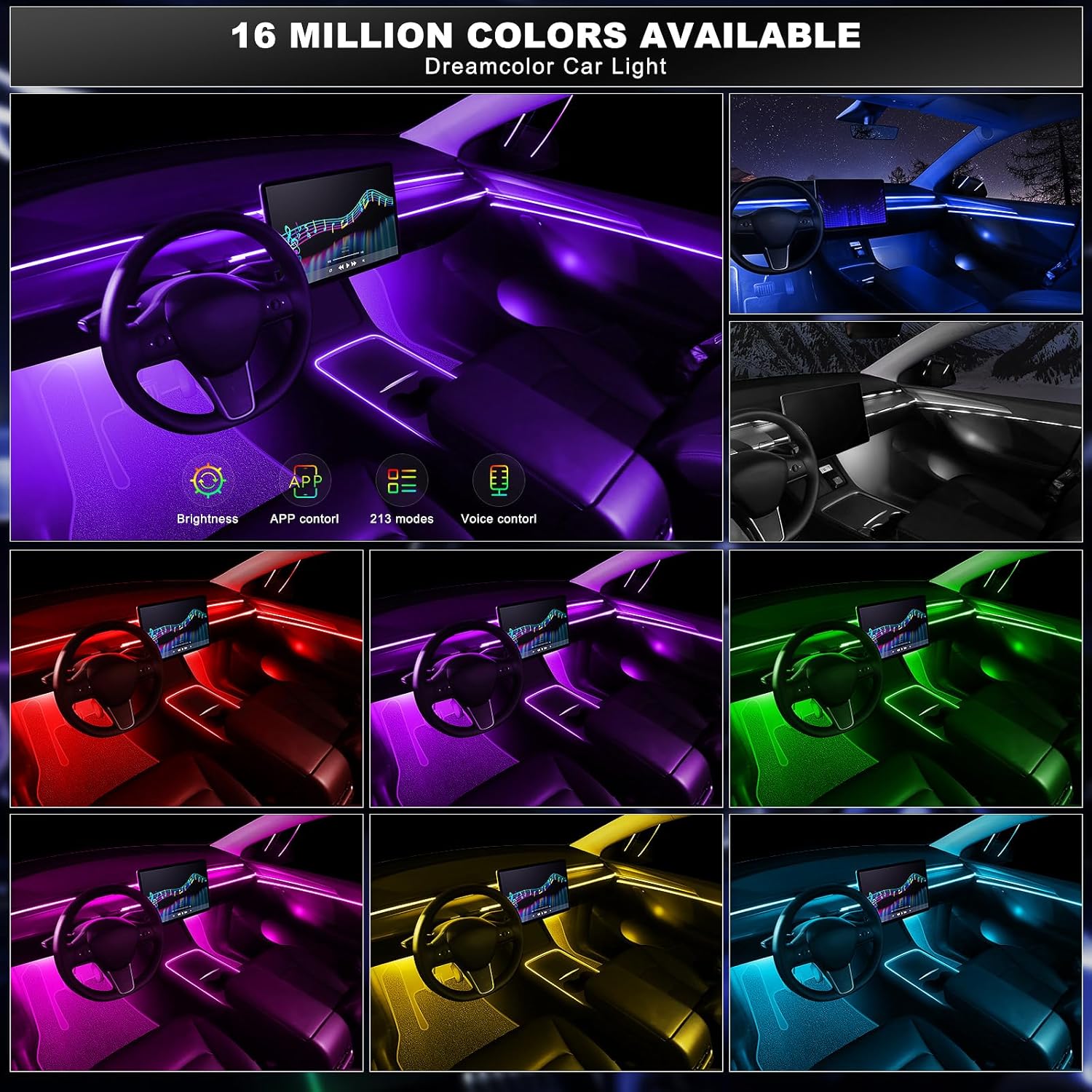 - 【Music Sensor】Built-in sound sensitive function, the Automobile Atmosphere Lamp can sync any sound captured from microphone, then change colors following the music rhythm as well as your voice.