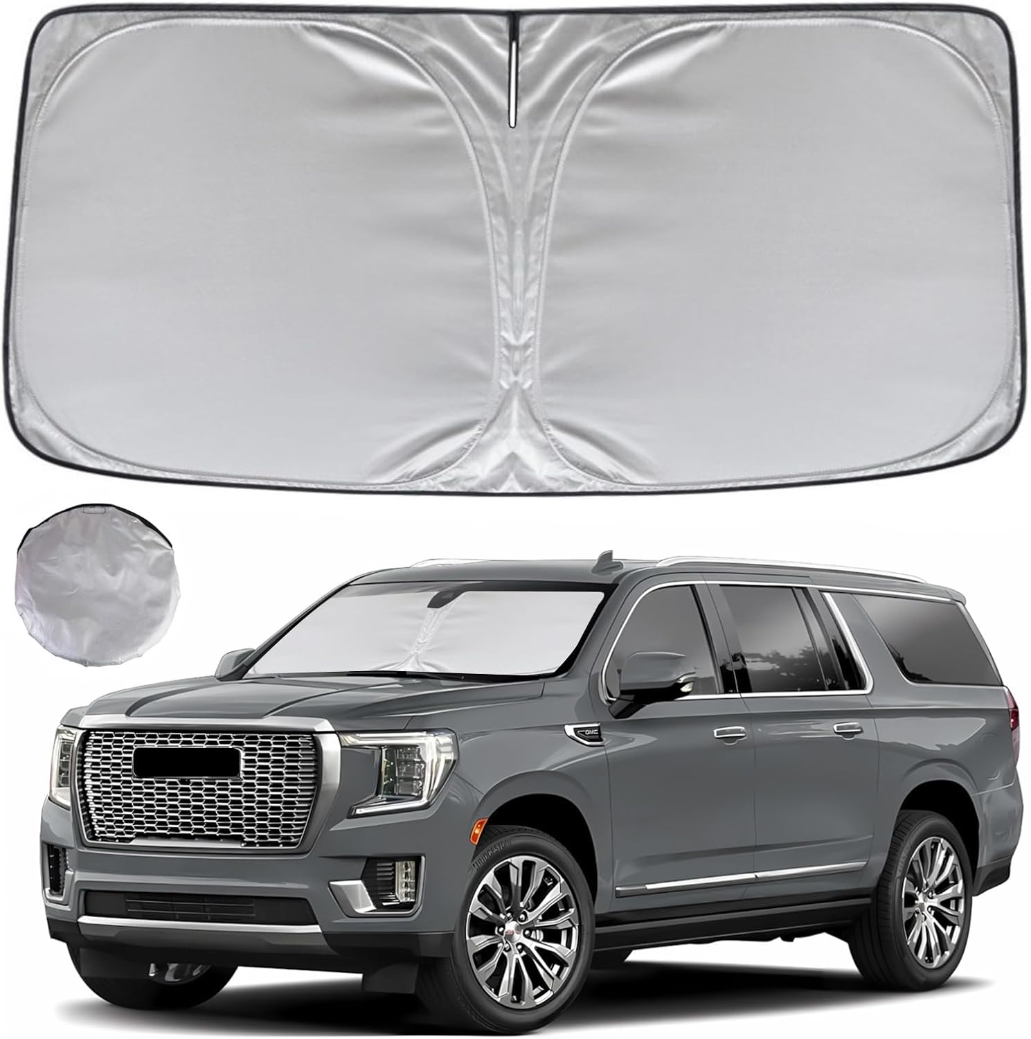 - KAYZT windshield sun shade is precise custom fit for 2021 2022 2023 2024 2025 GMC Yukon XL, Thoroughly covers every corner of the windshield, Tailored to accommodate rear view mirror, Ensuring a seamless and snug fit without obstruction, Must have car accessories for GMC Yukon XL Denali