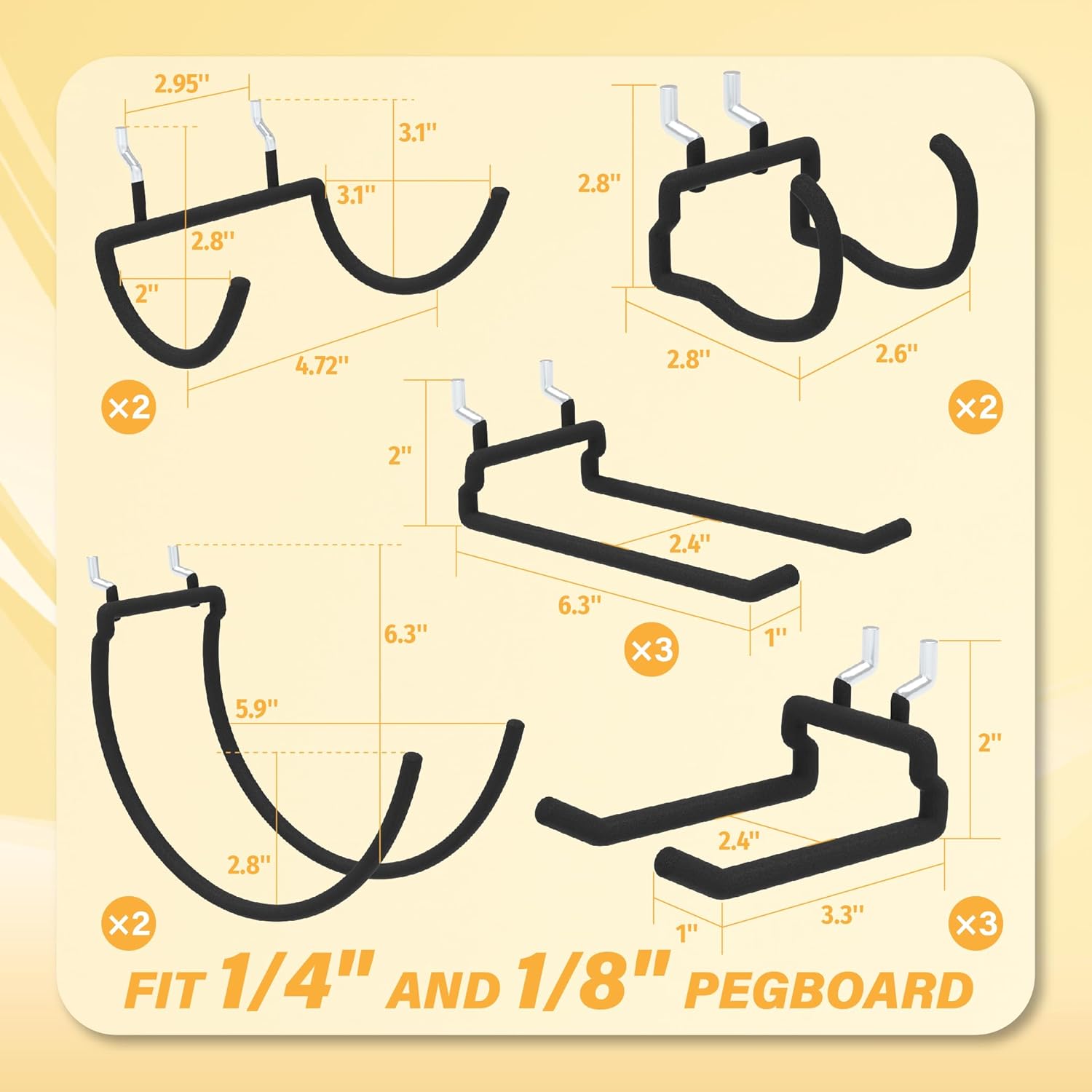 - Multi-Scene Application - Ideal for garages, workshops, craft rooms, retail stores, and home spaces, these pegboard hooks provide a practical and stylish storage solution for tools, supplies, and more.