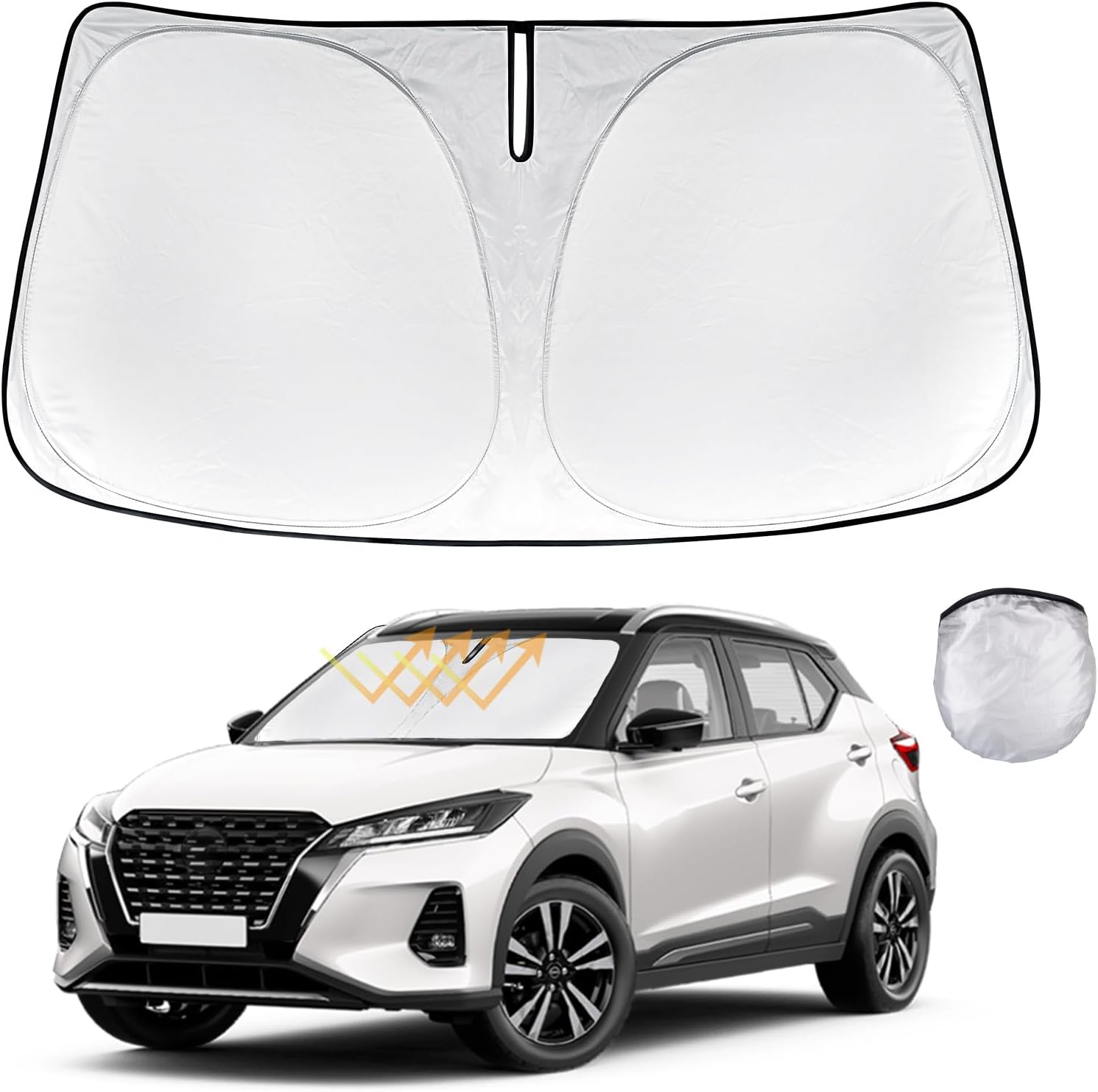 for Kicks Windshield Sun Shade Sunshade for 2018 2020 2021 2022 2023 2024 2025 Nissan Kicks S SV SR Crossover Accessories 2-Layer Car Front Window Sun Visor Shield Foldable Protector Blocks UV