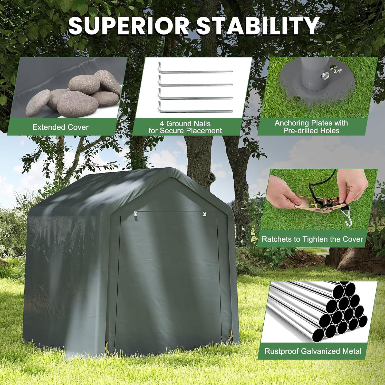 - Multifunctional Design: The heavy-duty storage shelter is a perfect solution to store your bikes, motorcycles, lawn mowers, patio furniture, pool equipment, firewood, and more. Whether in a garden, yard, or patio, the shed offers versatile functionality to meet your storage requirements.