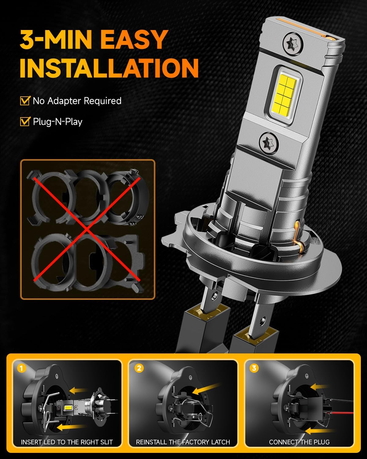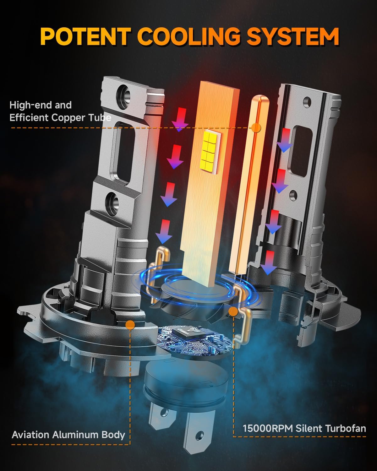 - Over 6,0000 Hours Lifespan:Built with premium materials like aviation aluminum and a large copper baseboard, this H7 Lighting bulb ensures over 60,000 hours of continuous and stable illumination. Thanks to a high-speed cooling fan,it efficiently dissipates heat,eliminating the need for frequent replacements.