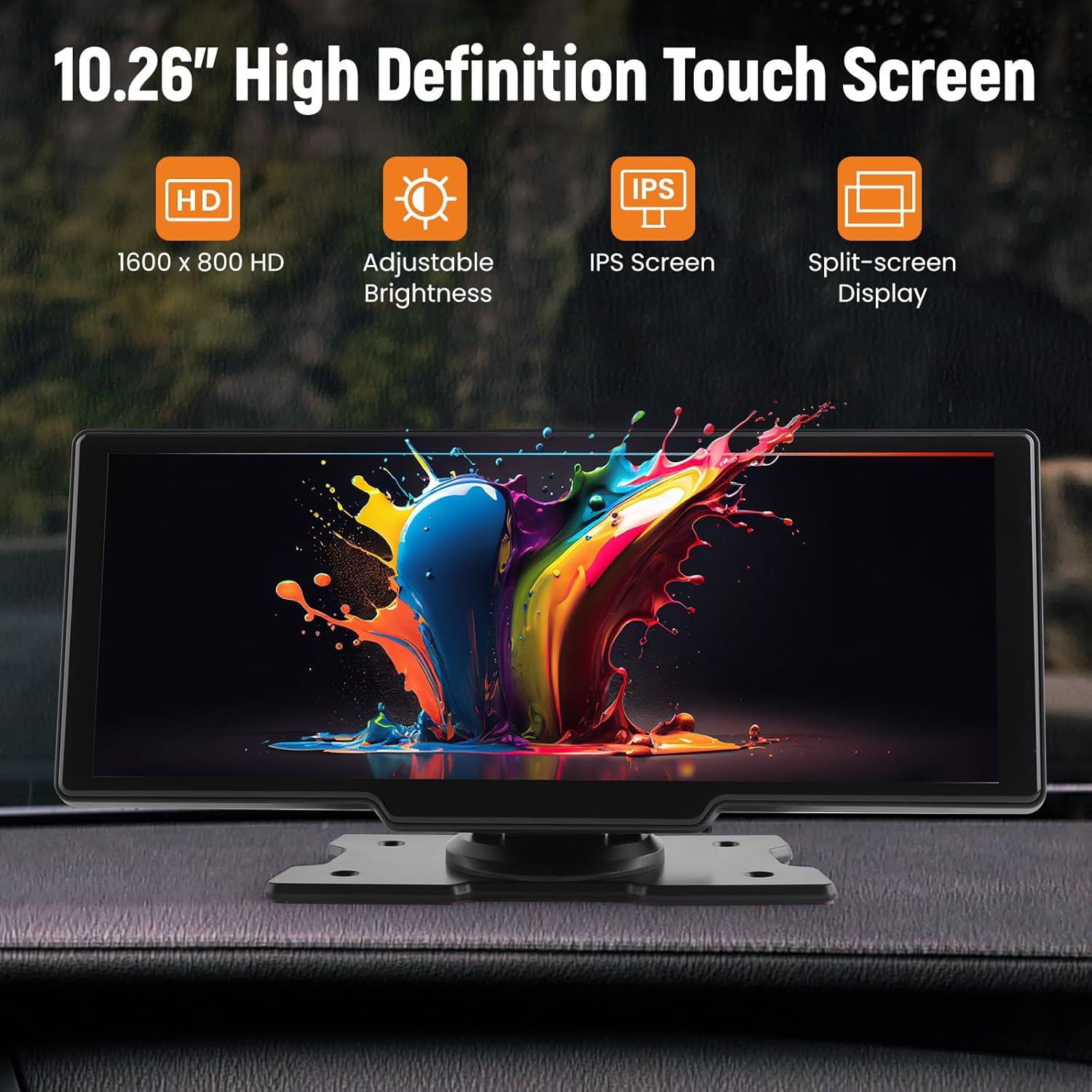 - 【10.26" HD Touch Screen, 1080P Ultimate Experience】 1080P high-definition touch screen, higher sensitivity, clearer display and richer colors. Car radio allows you to watch your favorite TV shows and movies anytime, anywhere. And supports most audio, image and video formats to ensure an excellent video experience