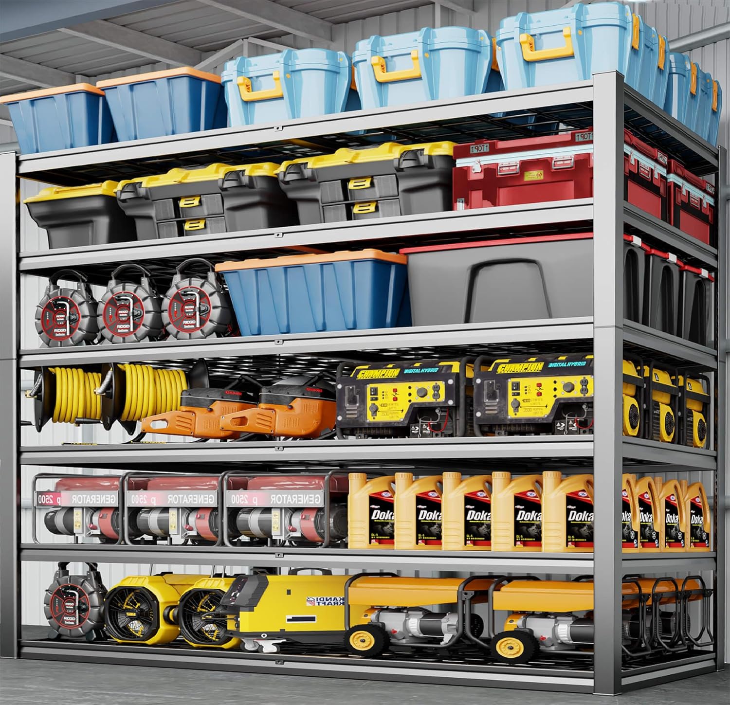 - 【Adjustable Heavy Duty Metal Shelves to Meet Different Needs】The height of each tier can be adjusted not only by moving the crossbar to meet the needs of different heights, but also the shelves can be assembled or disassembled into a variety of different metal shelves. The 84-inch tall 3000 lb. load-bearing garage shelves are not only strong, but they also give you more storage space.
