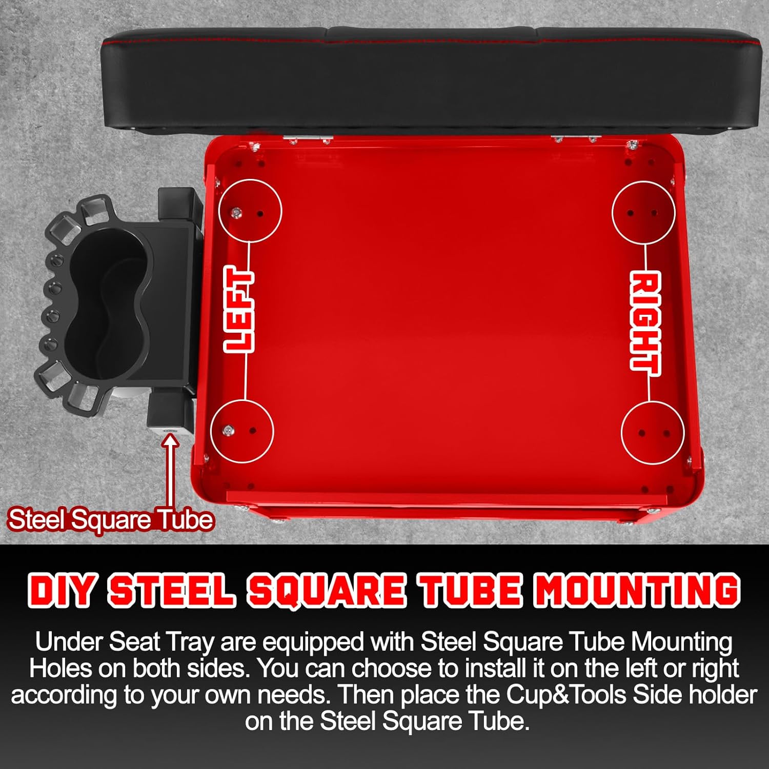 - Detailed Design: The work shop stool is equipped with removable cup & tools holder, which can be installed on the left or right side of the stool according to your needs, allowing you to quickly reach tools. It also features