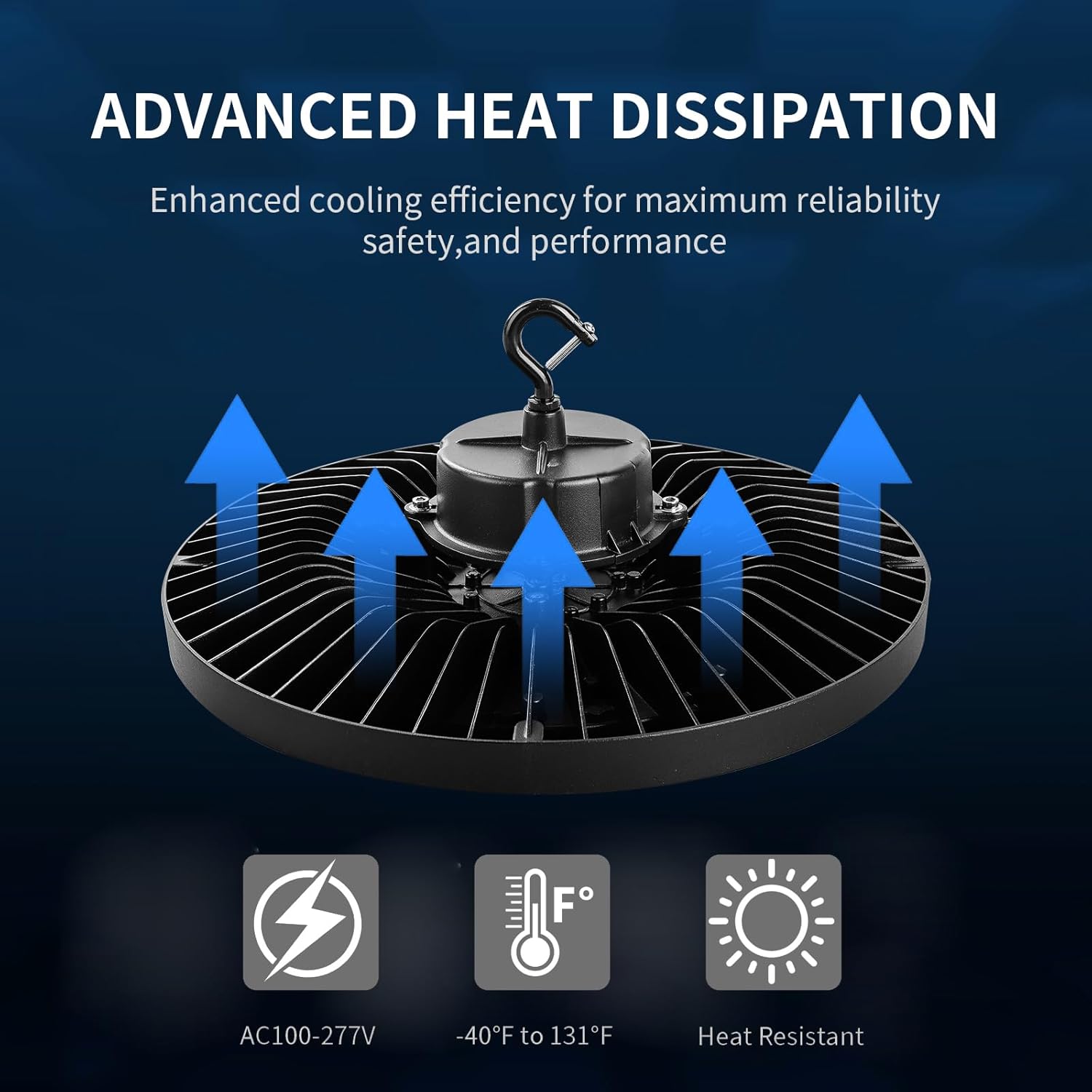 UFO High Bay Light,150W LED Shop Lights,3000K 4000K 6500K LED Garage Light with US Plug Cord, 0-10V Dimmable,Commercial Bay Lighting for Gym Factory Warehouse Barn