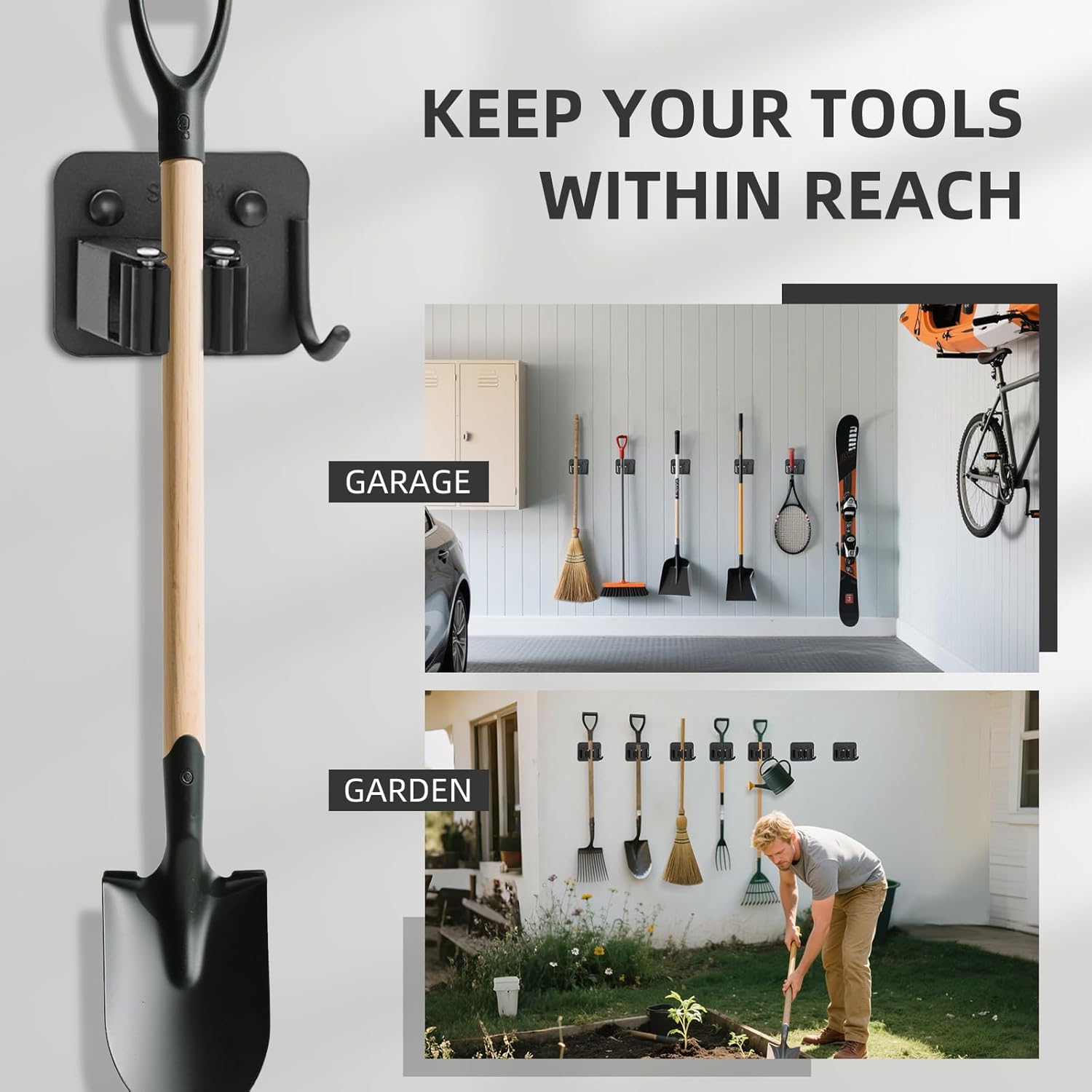 - đ§čăKeep Your Space Tidy & OrderlyăAenfaiy broom mop holders with hooks are your go-to solution for reclaiming order in your life. If youâve been struggling with how to store your cleaning supplies, garden tools, bathroom essentials, kitchen tools, or garage equipment, look no further! With this 4-pack wall mount broom hanger to keep your tools within reach while enjoying a clean, orderly home!
