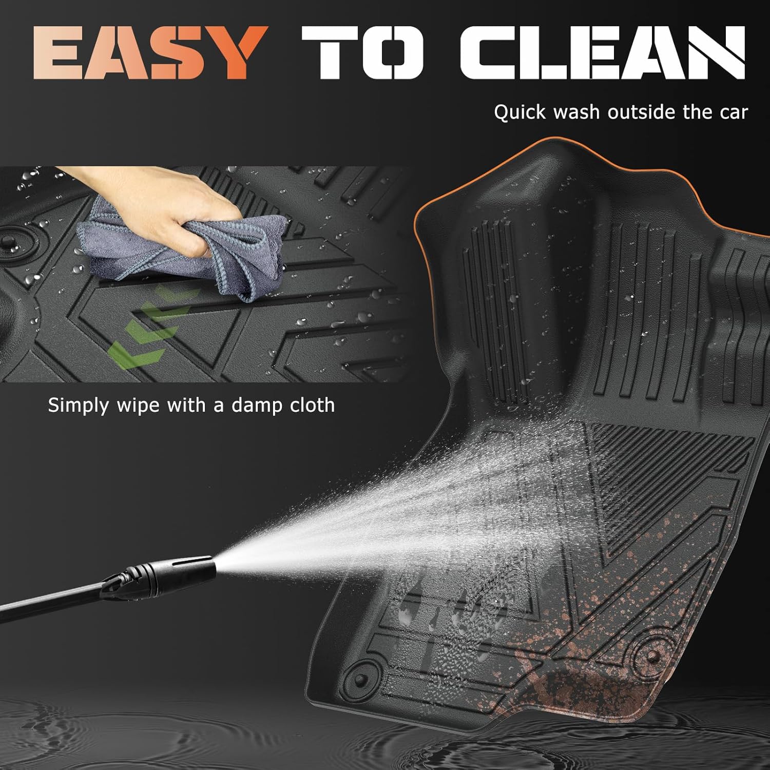 - 【Easy to Clean】The smooth surface repels dirt and grime, making cleaning a breeze. Simply wipe down with a damp cloth or rinse with water to restore the floor mats to their original condition. The durable material ensures that the mats can withstand frequent cleaning without losing their effectiveness, making it easy to maintain a clean cargo area.