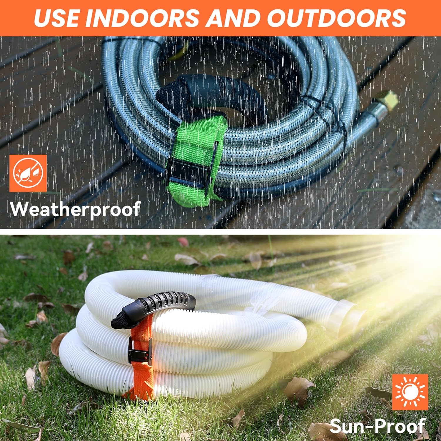 - Versatile Applications: Ideal for organizing and transporting a wide range of items, including garden hoses, pool hoses, vacuum hoses, extension cords, and more. Keep your workspace tidy and efficiently move your equipment with these versatile storage straps