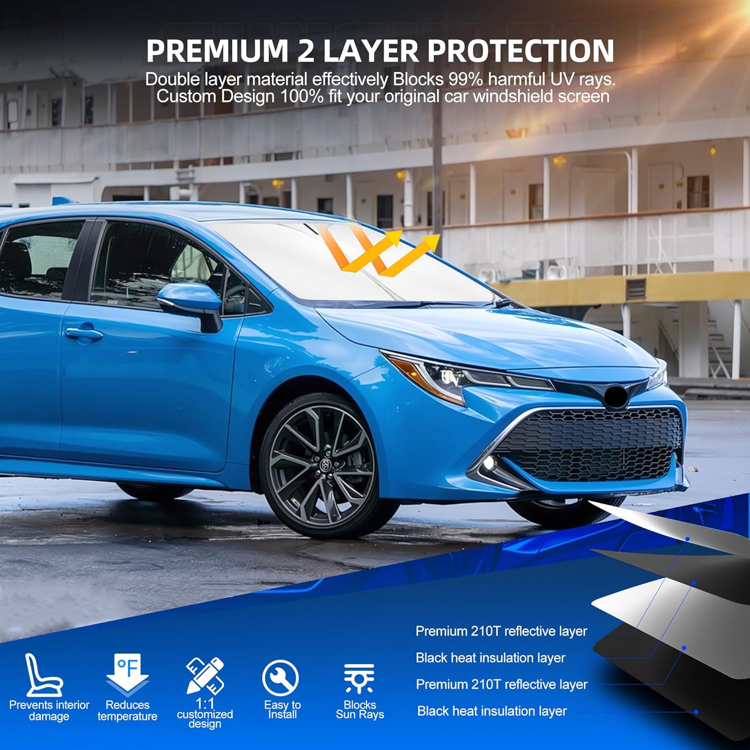 - Vehicle Service Type compatible with Toyo-ta Corolla 2014-2019 : Material 210T Reflective Fabric