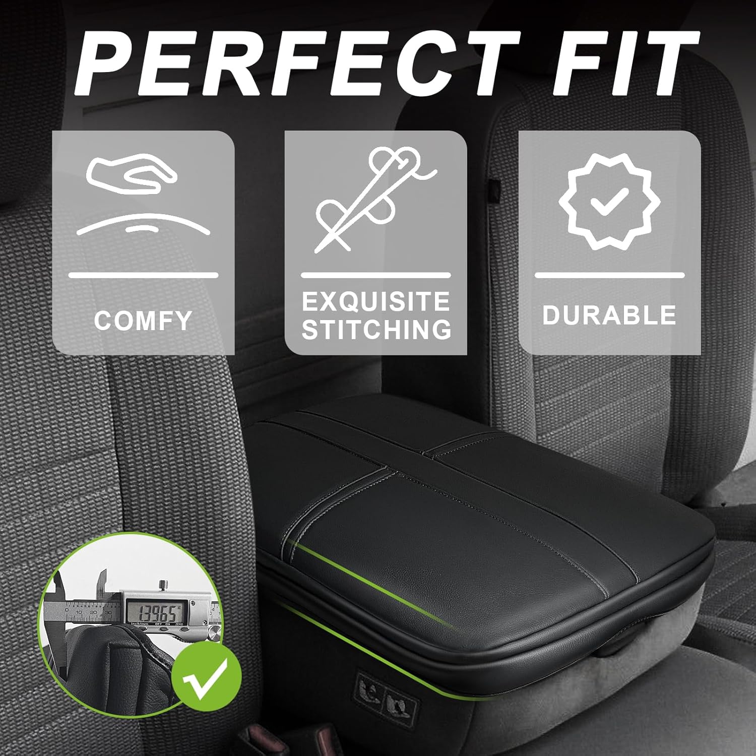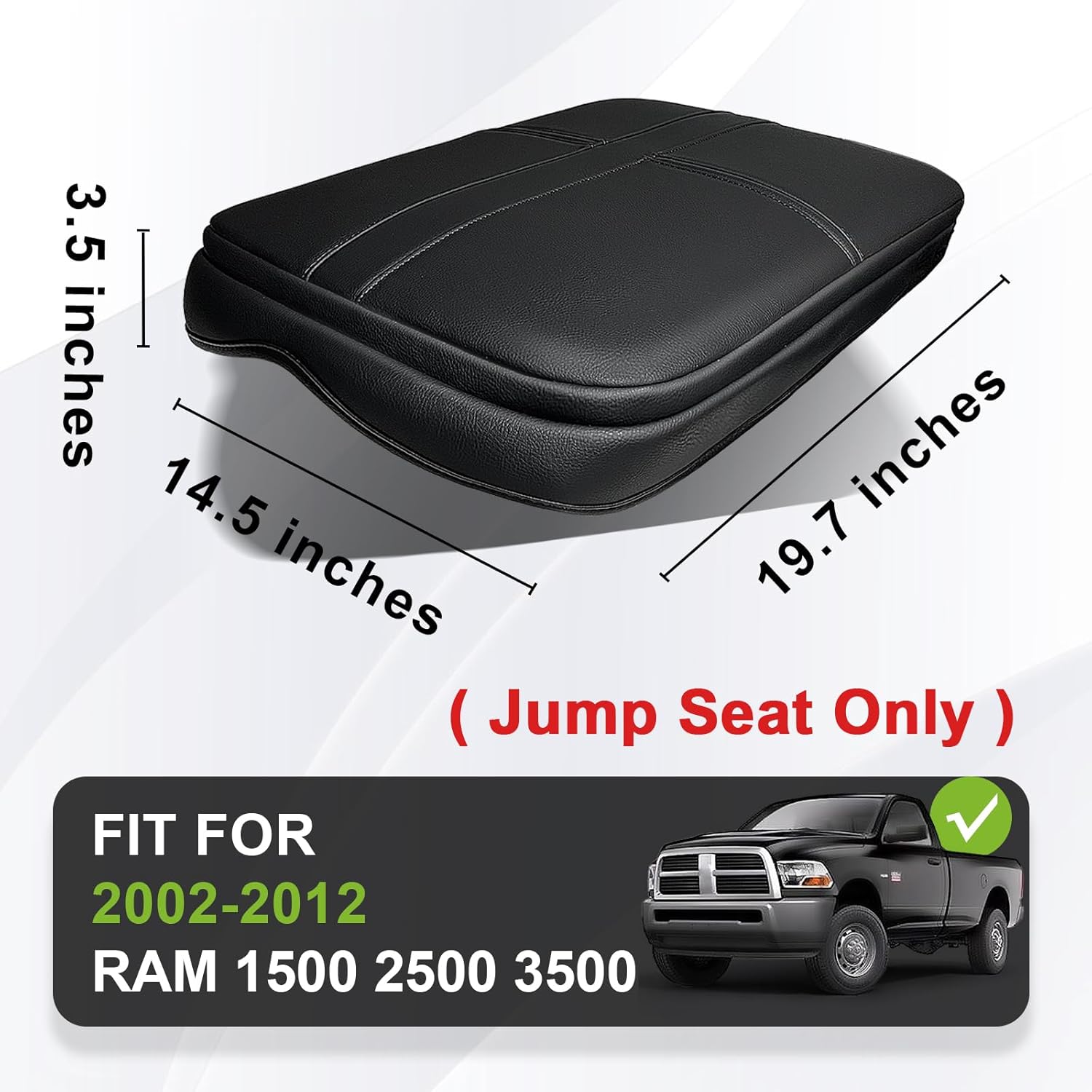 Muslogy Center Console Armrest Cover Compatible with Dodge Ram1500/2500/3500 2002-2012 Comfort Armrest Pad Arm Rest Cushion Vegan Leather Protector 1-Inch Extra Thick(Jump Seat ONLY)