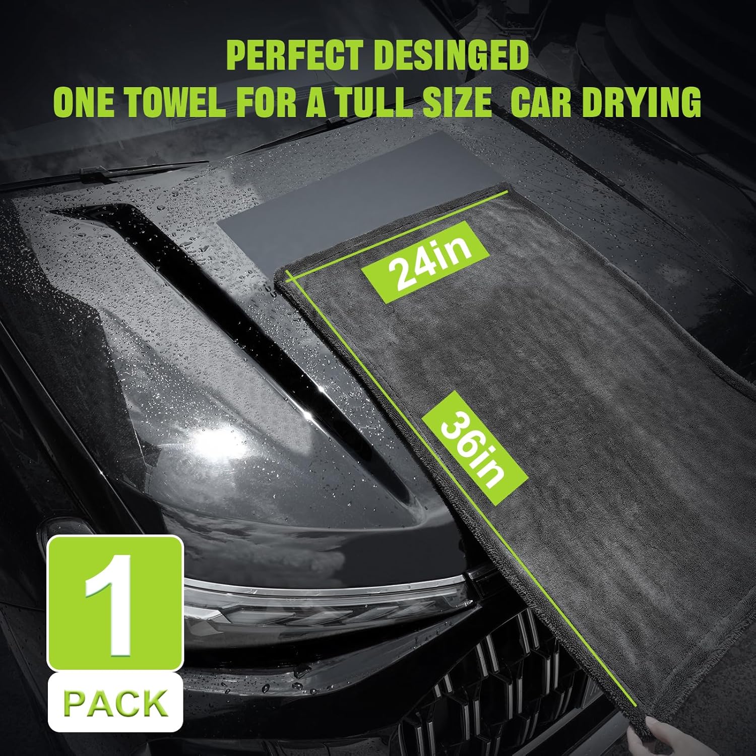 - SUPER ABSORBENT & VERSATILE - This car towels drying are designed to be soft yet highly effective. The edgeless design and premium microfiber ensure a smooth, scratch-free clean on all paint finishes. The 1300 GSM microfiber towels for cars has ultra-absorbent, absorbs over 6 times more than other towels. The large size and advanced microfiber design make it ideal for drying large vehicles like SUVs and cars