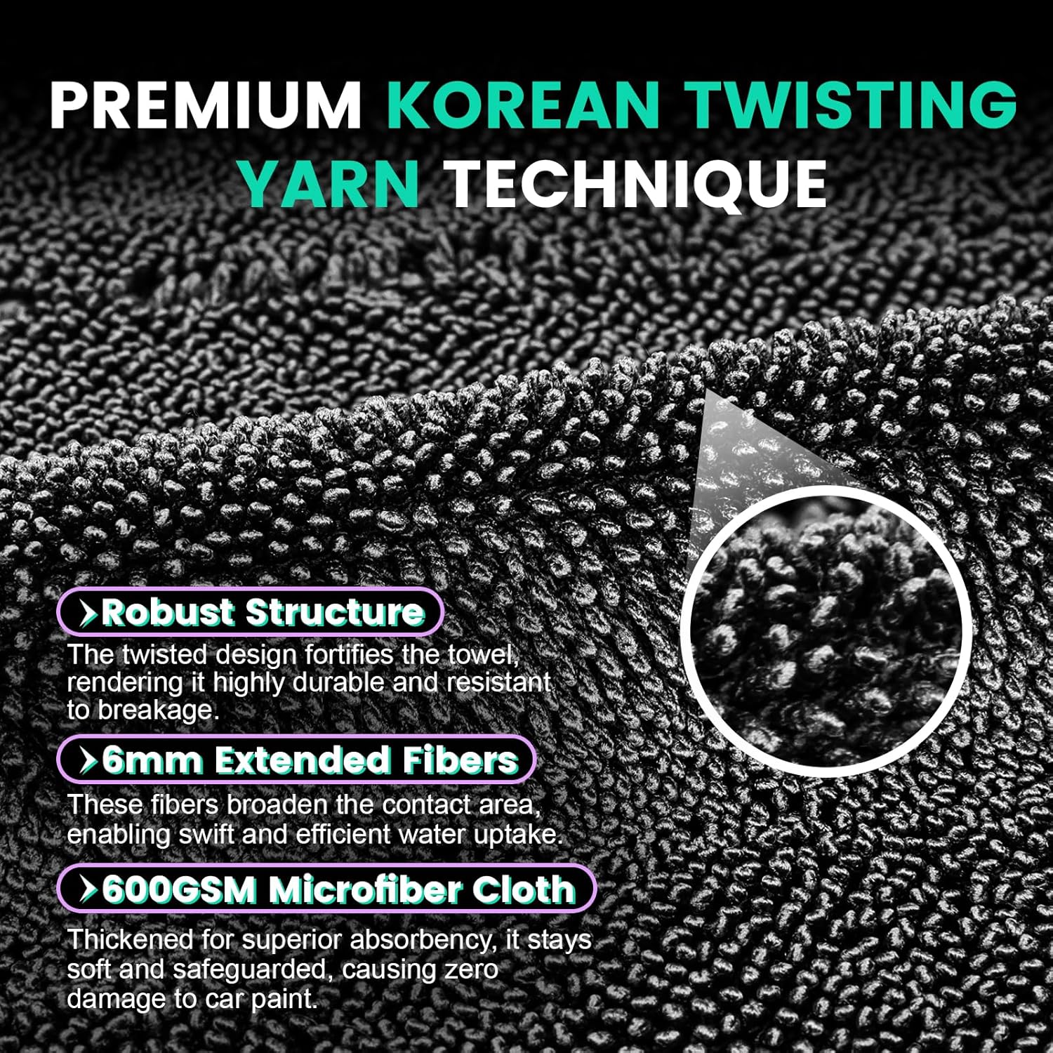 - 【EXCEPTIONAL ABSORBENCY & QUICK DRYING】 The TEAWOO Car Drying Towel, with advanced tech, absorbs up to 8 times its weight in water. It dries cars fast, whether after rain or a wash, saving you time and effort.