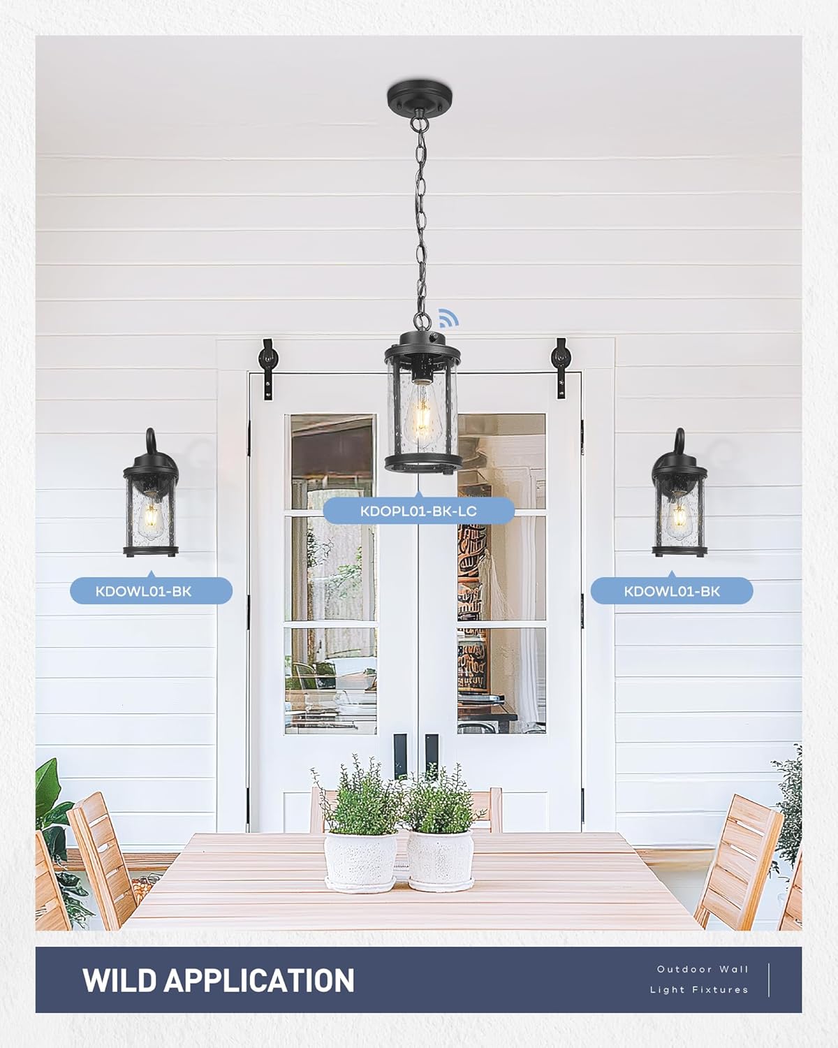 kudos Porch Lights, 12.5 inch Cylinder Outdoor Wall Light, E26 Sockets, Anti-Rust Waterproof Light Fixtures Wall Mount for Patio, Black with Seeded Glass, KDOWL01-BK