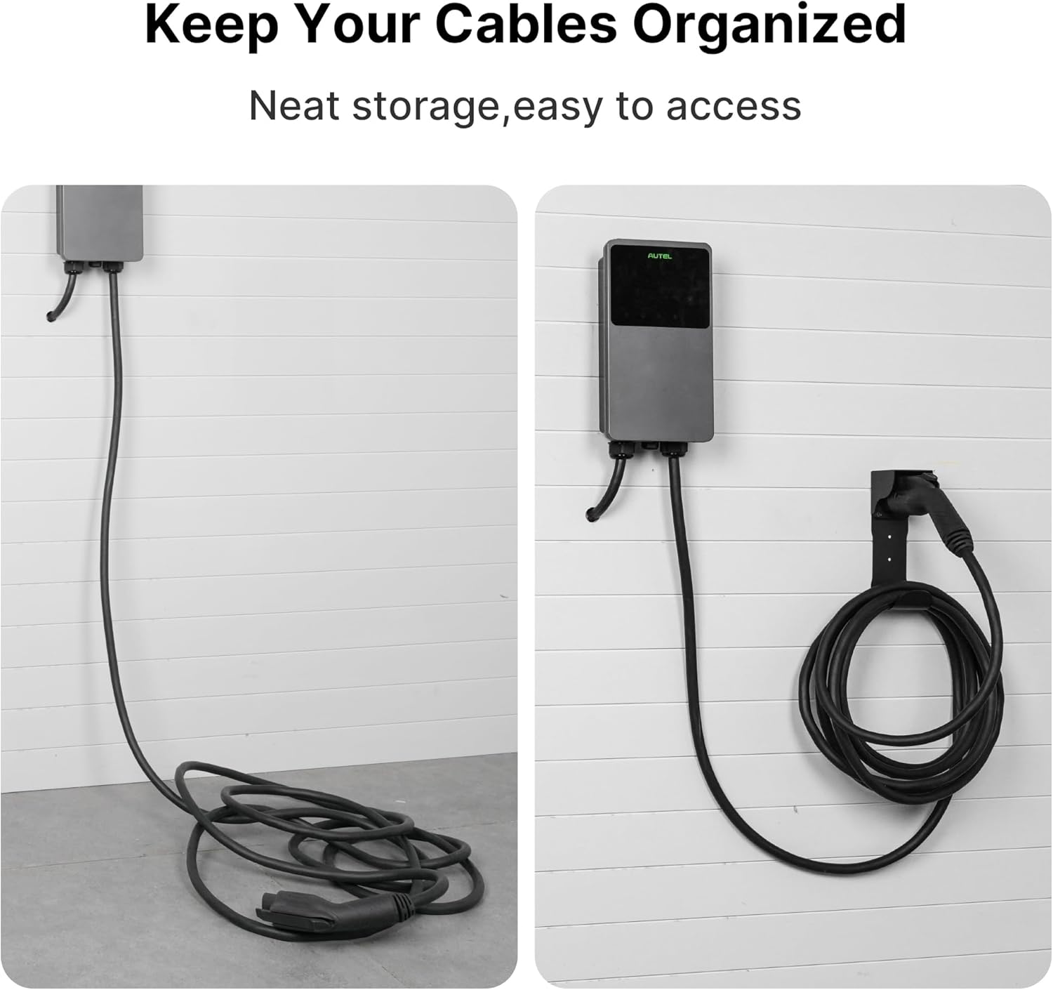 - 【Sturdy and Durable】The deep U-hook of EV charger cable hanger is made of heavy-duty and anti-rust steel for more durability to hold your electric vehicle charger cable steady. The J1772 holder is made of ABS plastic to avoid wear on the EV car charger plug. Furthermore, the ceiling design around the EV charger nozzle dock can prevent rainwater from falling on the charger plug, so the Autel electric car charger cable holder is well suitable for outdoor use.