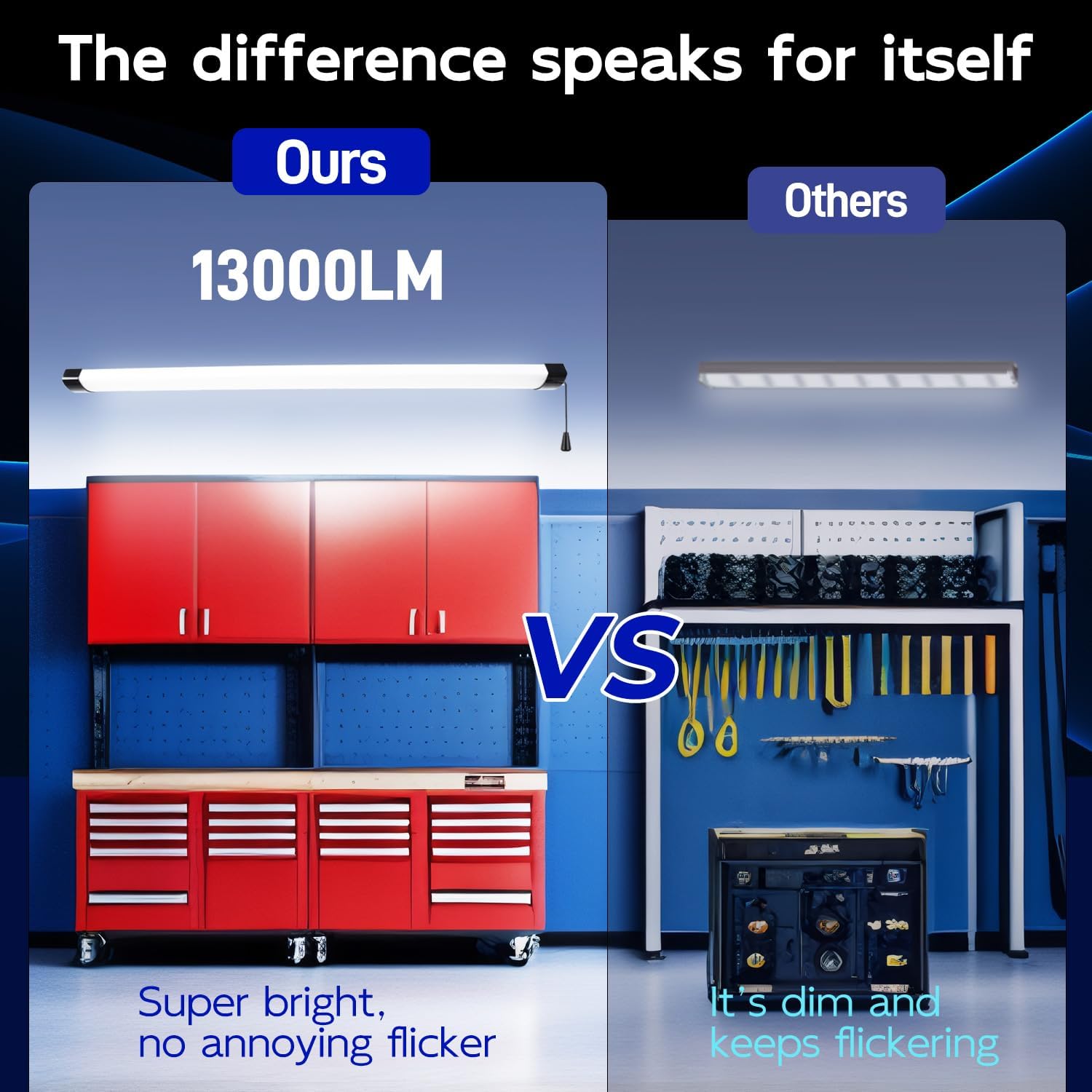 - ✅ Linkable - 4ft linkable shop light use plug connection to connect up to 3 pcs together in your garages, workshops, workbench areas, storage areas, warehouses, basements, equipment rooms, etc.