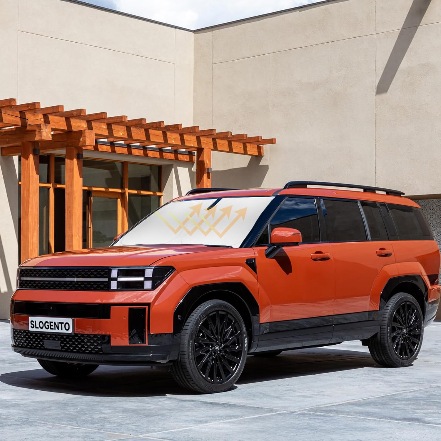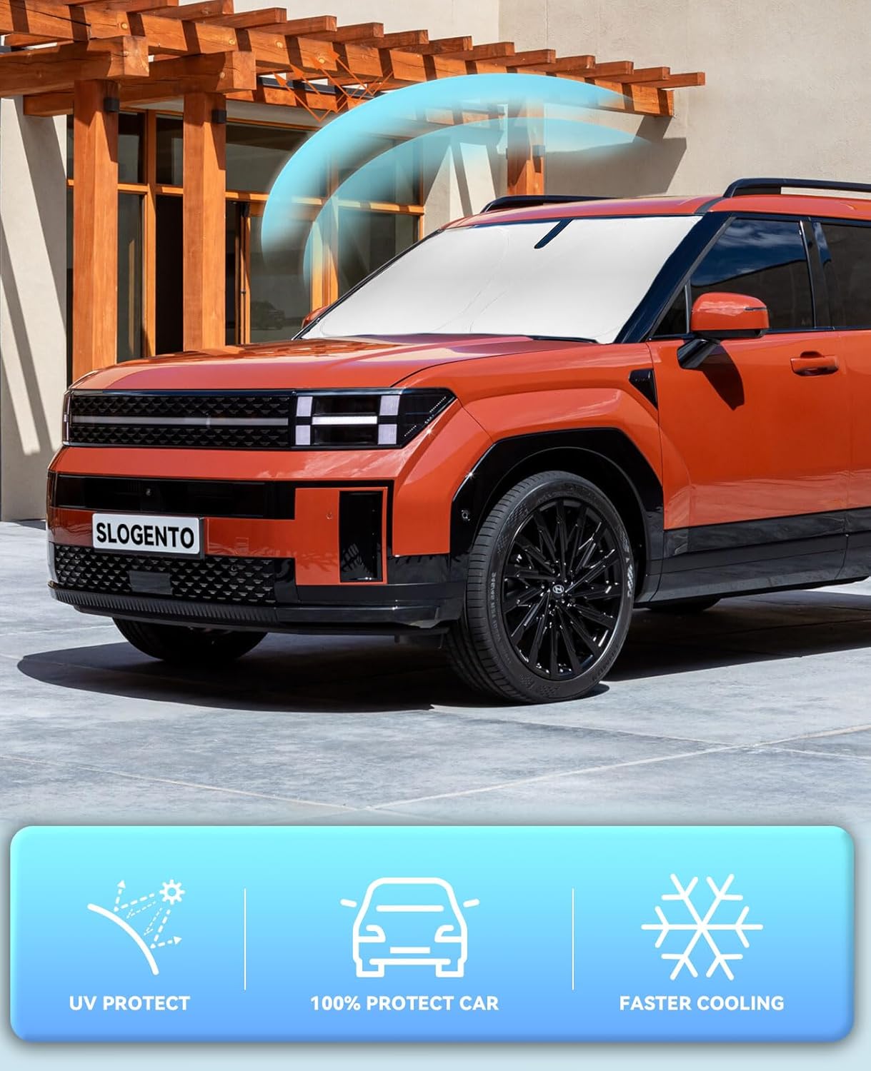 - 【Vehicle Specific】Our Windshield Shade Cover custom fit for 2019 -2024 2025 2026 Hyundai Santa Fe,Full covered your windshield,No Gap,100% Perfect fit. The precise fit design and reinforced steel ring are sufficient to allow the sun shade to precisely fit the front window without the need for suction cups to hold it in place, effectively protecting your car from the sun's rays.