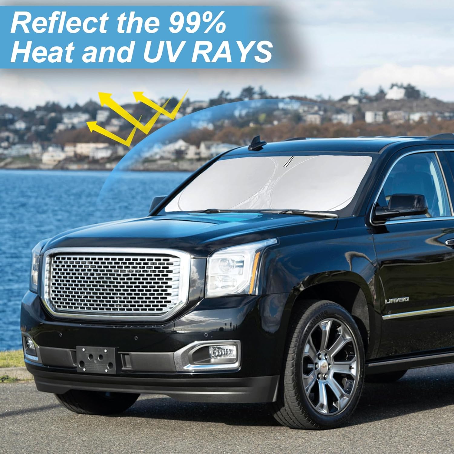 - [CUSTOM-FIT FRONT WINDSHIELD SUNSHADE] Automotive windshield sun shade is Specifically designed,which for 2021 2022 2023 2024 2025 GMC Yukon XL Accessories We have several size of car sunshade. Please measure your car size and refer to our size before your purchase. Once installed it won't have gaps, sags or slumps like other car sun shade windshield