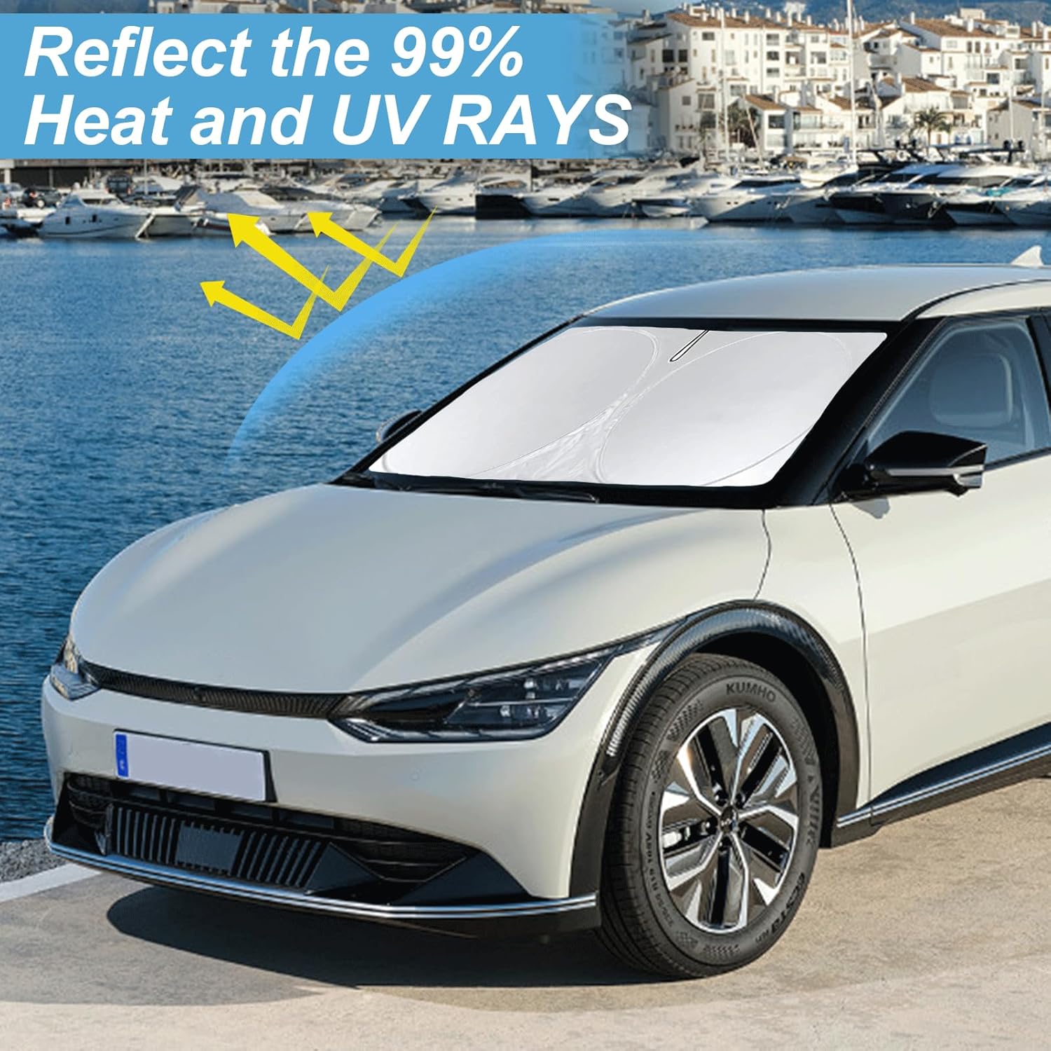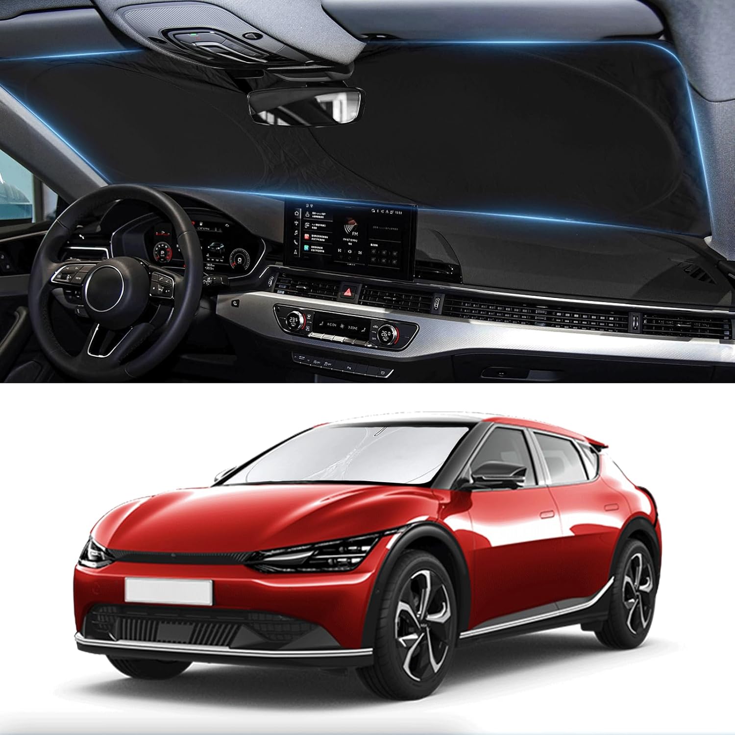 - [CUSTOM-FIT FRONT WINDSHIELD SUNSHADE] Automotive windshield sun shade is Specifically designed,which for 2022 2023 2024 2025 EV6 for Kia accessories. We have several size of car sunshade. Please measure your car size and refer to our size before your purchase. Once installed it won't have gaps, sags or slumps like other car sun shade windshield