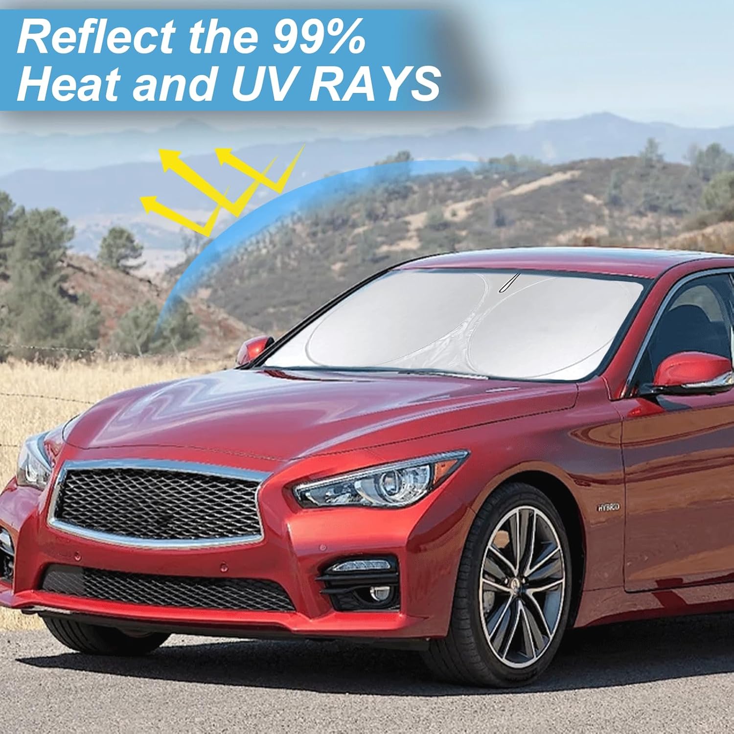 - [CUSTOM-FIT FRONT WINDSHIELD SUNSHADE] Automotive windshield sun shade is Specifically designed,which for 2014-2024 2025 Q50 for Infiniti accessories sun visor windshield shade .We have several size of car sunshade. Please measure your car size and refer to our size before your purchase. Once installed it won't have gaps, sags or slumps like other car sun shade windshield