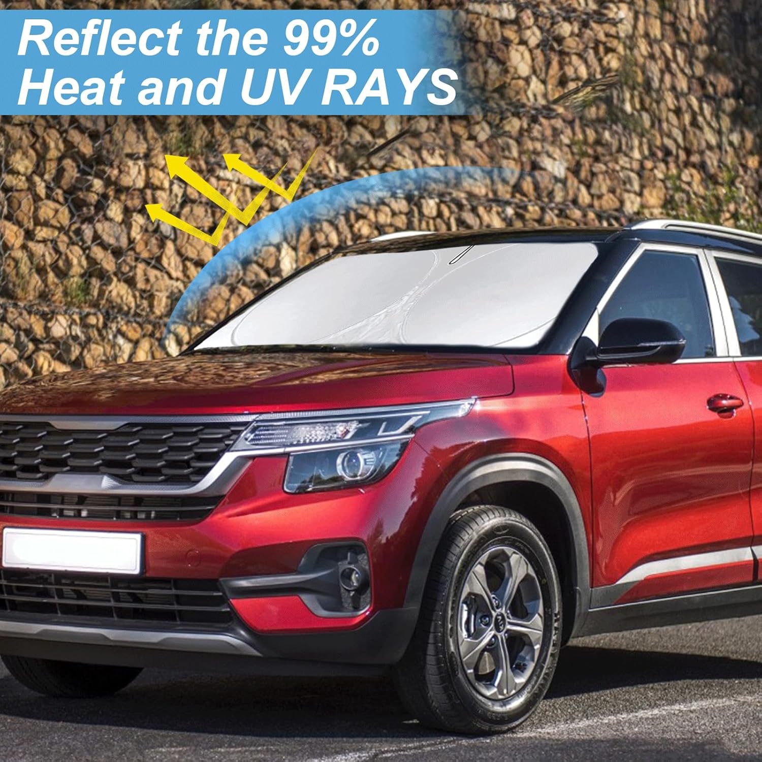 - [CUSTOM-FIT FRONT WINDSHIELD SUNSHADE] Automotive windshield sun shade is Specifically designed,which for 2021-2023 2024 2025 2026 Kia Seltos sun visor windshield shade for the 2025 Toyota Camry LE, SE, XLE, XSE accessories. We have several size of car sunshade. Please measure your car size and refer to our size before your purchase. Once installed it won't have gaps, sags or slumps like other car sun shade windshield