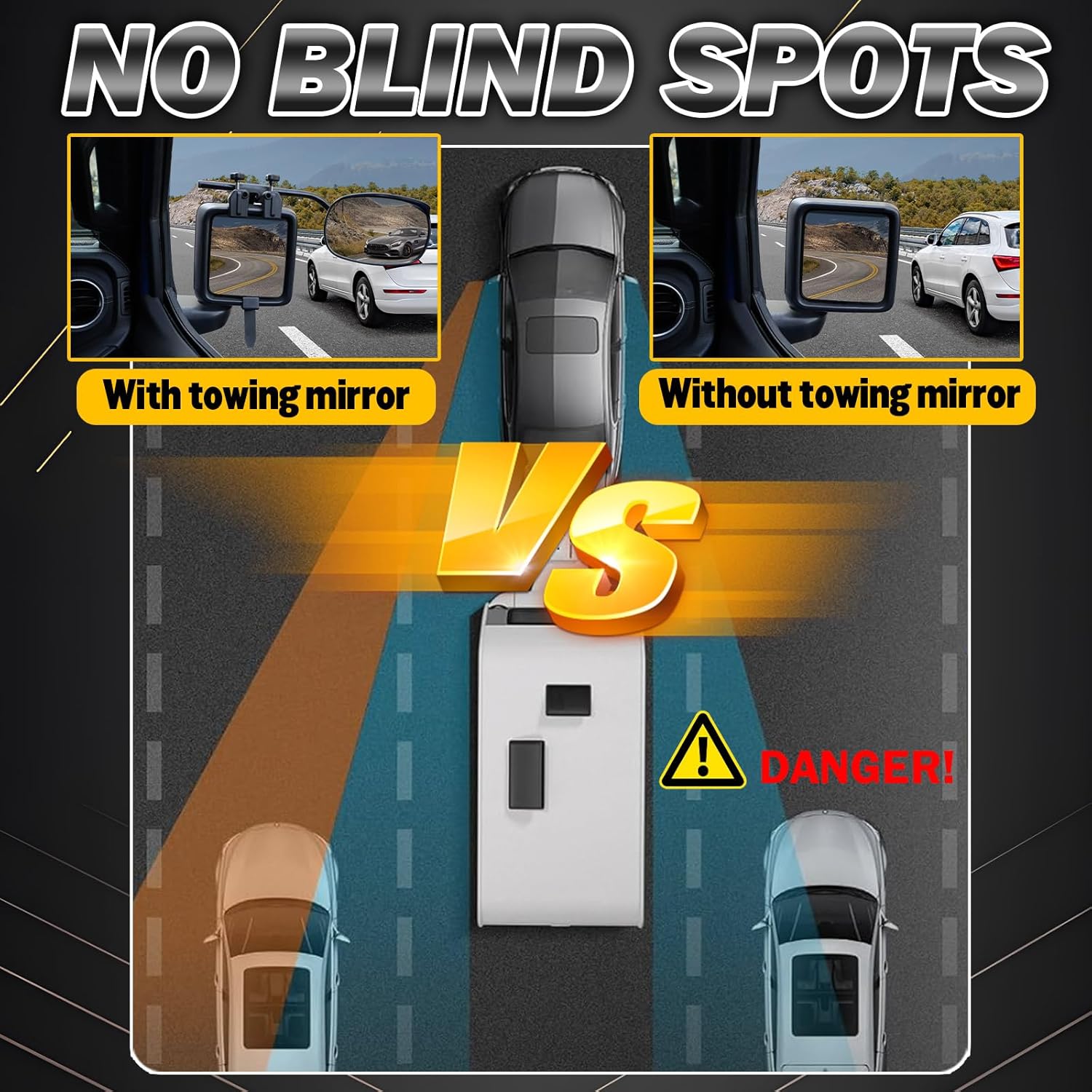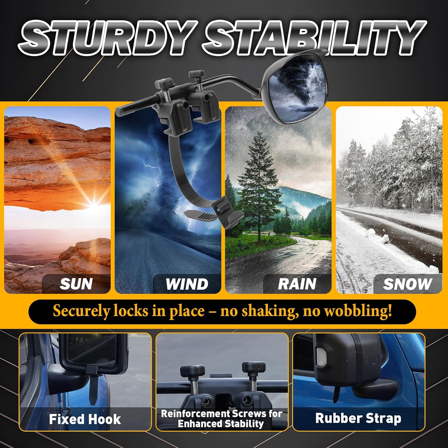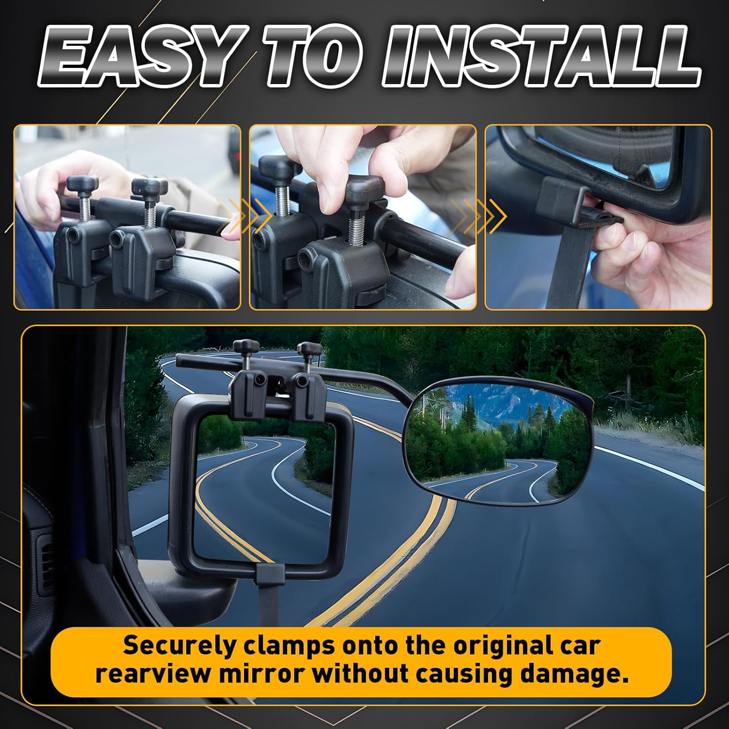 - 【SECURE AND STABLE】The solid clamps ensure the mirrors stay in place without bouncing or moving while driving, providing a stable view. Built to withstand strong winds and high speeds, our towing mirror ensures dependable performance in all driving conditions.