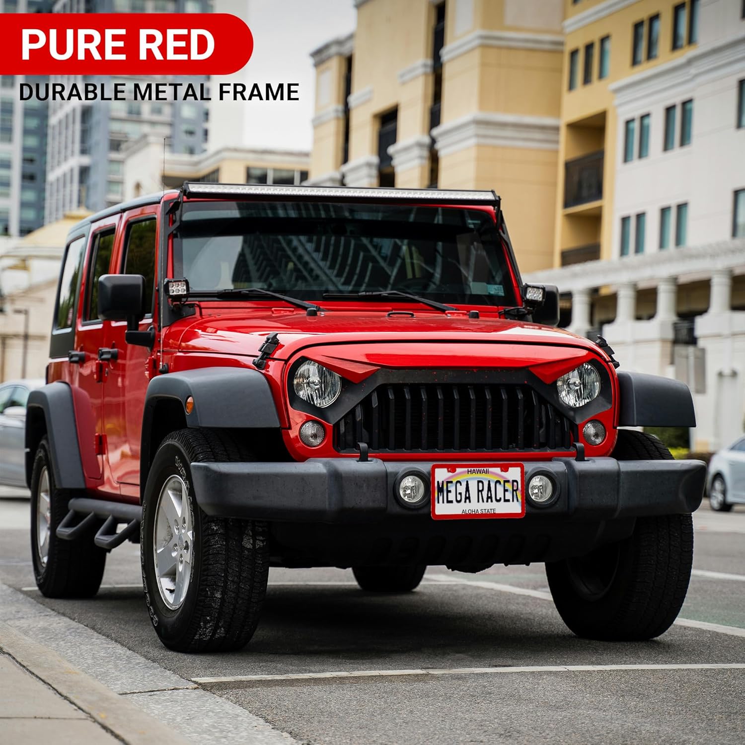 - STRONG DURABLE QUALITY: Our 1 pc License Plate Frame Red Holder is made strong to uphold anything from car washes to weather changes. Mega Racer's red license plate frames are RATTLE PROOF and RUST RESISTANT keeping your vehicle paint SCRATCH FREE.