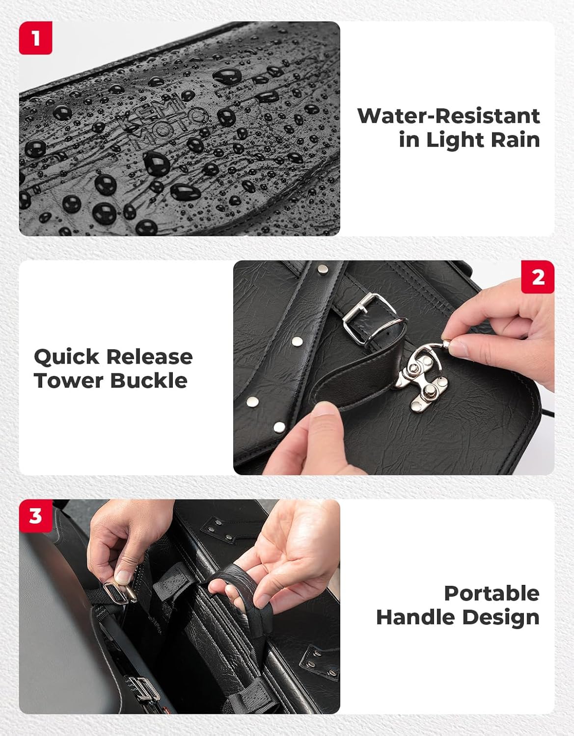 - Wide Suitability: These upgraded motorcycle saddlebags are universal, and fit for many motorcycle models including but not limited to Sportster Softail Dyna Road King Rebel, V-star, Shadow, and Vulcan
