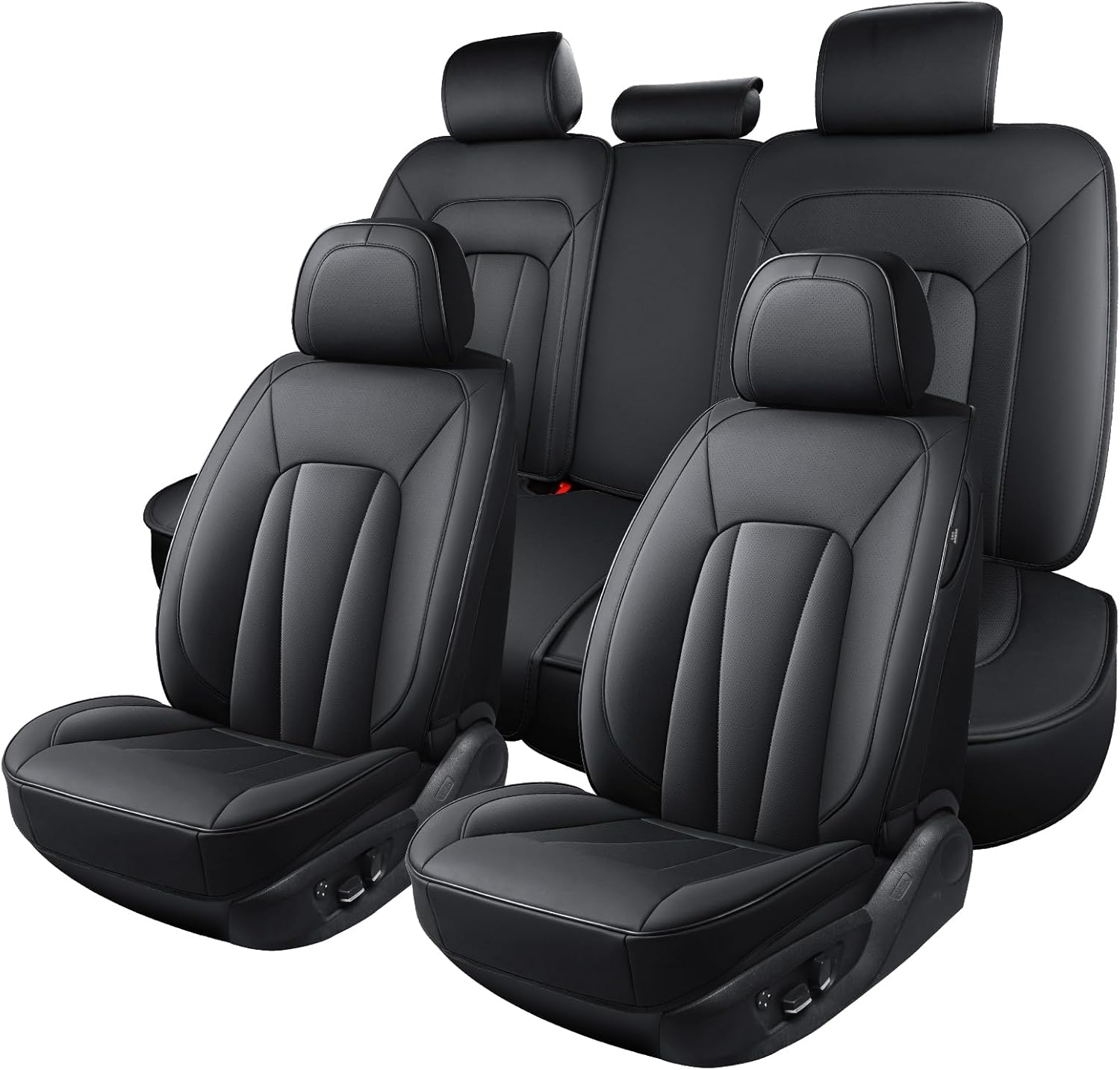 Car Seat Covers,5 Seats Automotive Seat Covers,Breathable Car Seat Protector Waterproof Leather Car Seat Covers for SUV, Sedans and Trucks,Luxury Full Wrapping Edge Seat Covers,Black