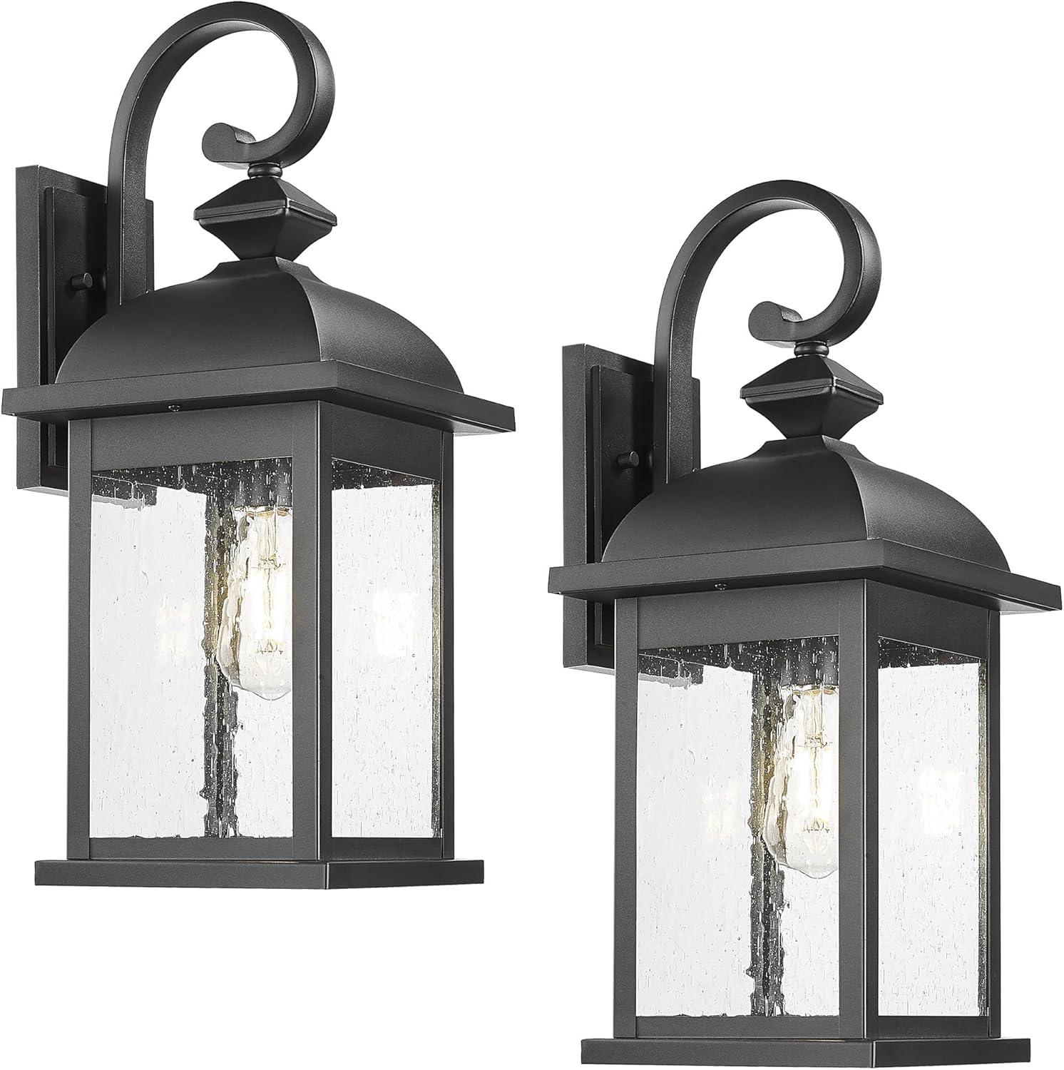 - Modern & Stylish: The classic lantern shape paired with seeded glass enhances any exterior space. The textured glass creates a warm, inviting glow, making these wall lights perfect for porches, patios, and entryways.