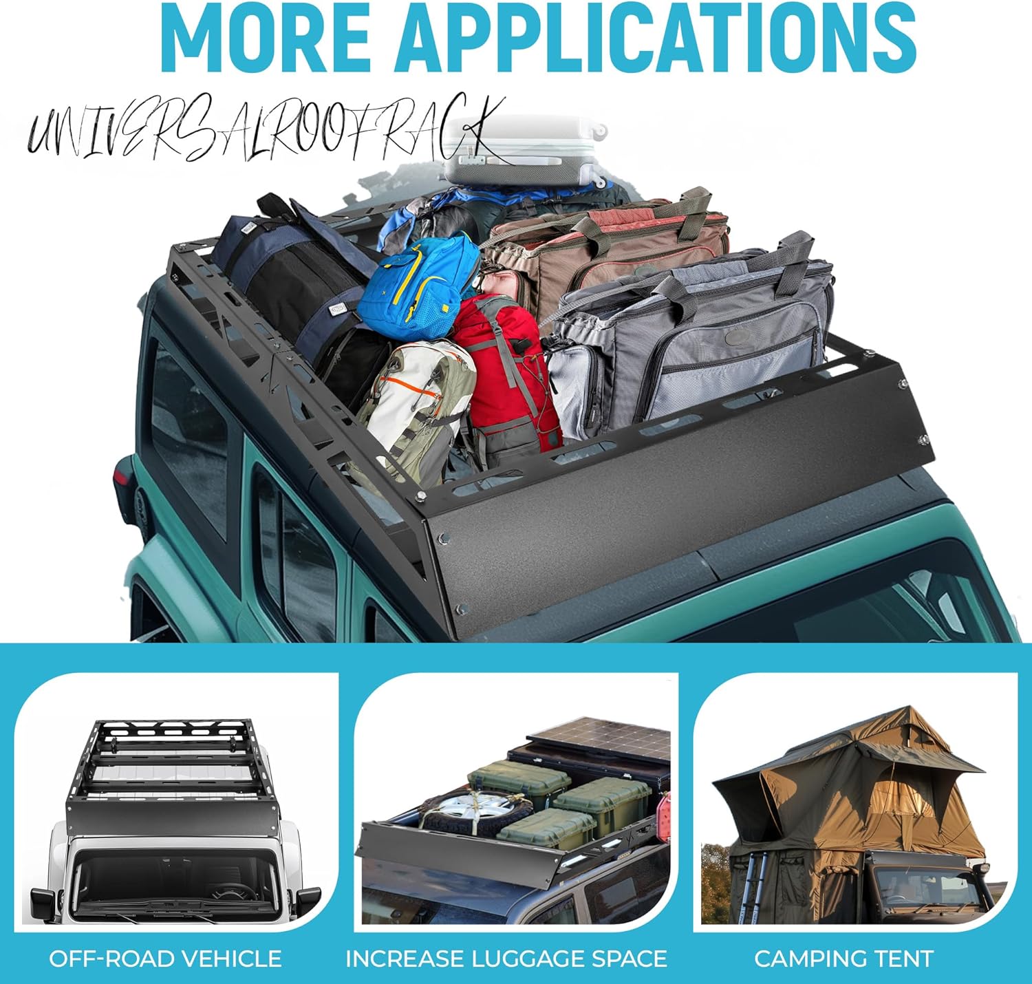 - High-strength Structure: The roof cargo basket is made of steel, making sure this basket high strength and not easy to damage. Featuring black powder coated surface finish, making this basket against to wear and tear