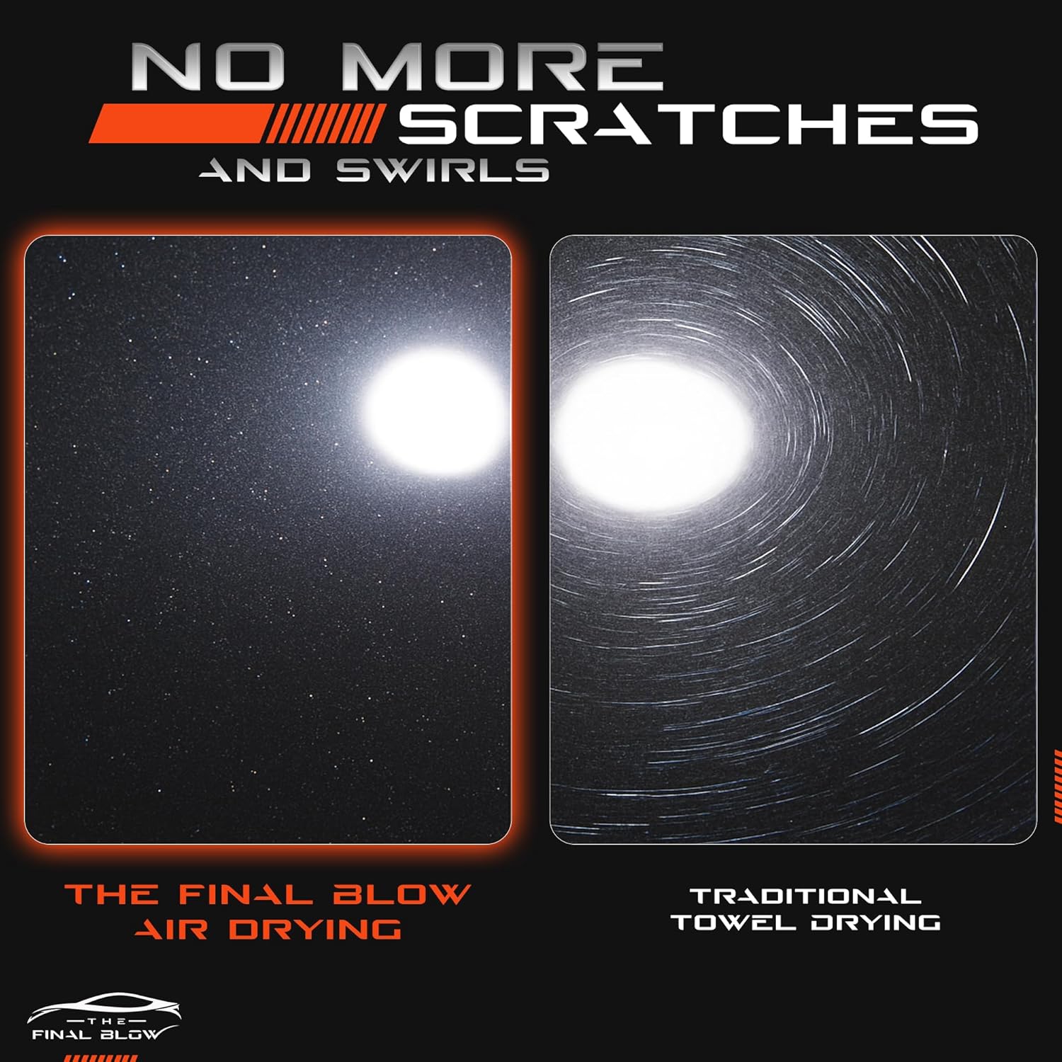 - đSTOP WASTING TIME WITH TOWELS. Drying your car with a towel is a painâand worse, it can leave behind swirl marks and scratches. Our high-powered car dryer blasts water off quickly, so you get a spotless, streak-free shine without the risk of damage.