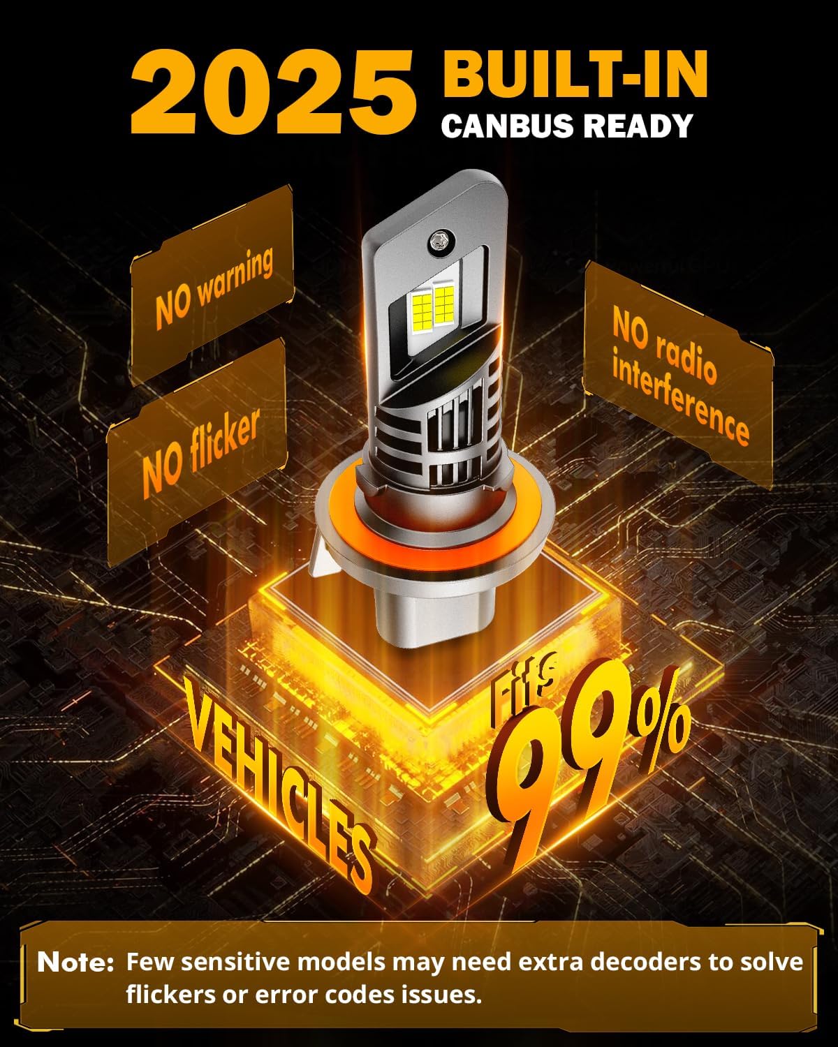 - 99% Super Compatible: Built-in intelligent decoding chips, highly compatible with 99% models' system without causing errors and flickers. Note:1% sensitive models still need decoders. Please message auxbeam to help slove the problem.