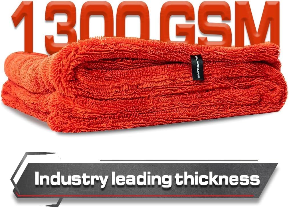 Blackline Car Drying Towel - 2ft x 3ft XL-Popular Pick Among Detailing Pros - 1300 GSM Microfiber Towel - Absorbs Over 8lbs of Water - Leaves No Streaks, Spots or Scratches - Dries an Entire Car