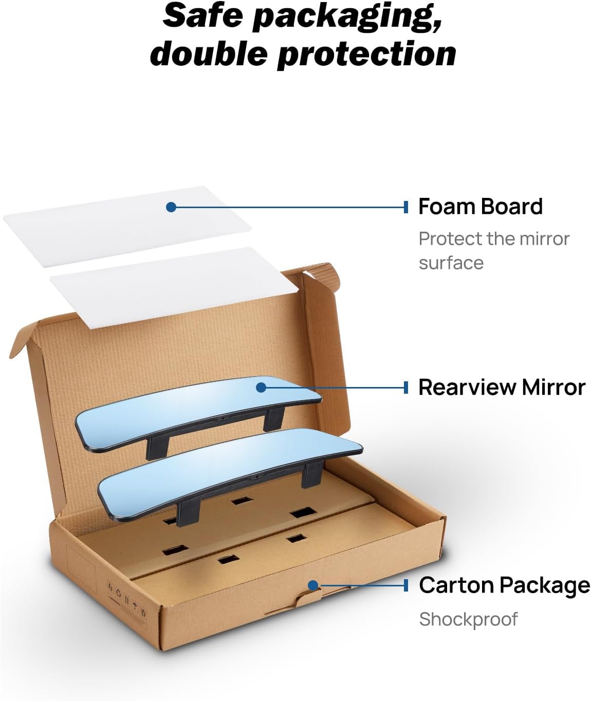 - 【WIDER VIEW】: This convex rearview mirror provides you with a wider-angle view and perfect vision. 1. Blue rear-view mirrors can reduce the glare of the high beams of vehicles coming from behind and improve nighttime driving safety. Note: it is not recommended to use it in a completely dark environment. 2. Eliminating blind spots effectively for safe driving makes your reversing safer. 3. Let you know the condition of the child in the back seat more clearly, so that you can drive more at ease