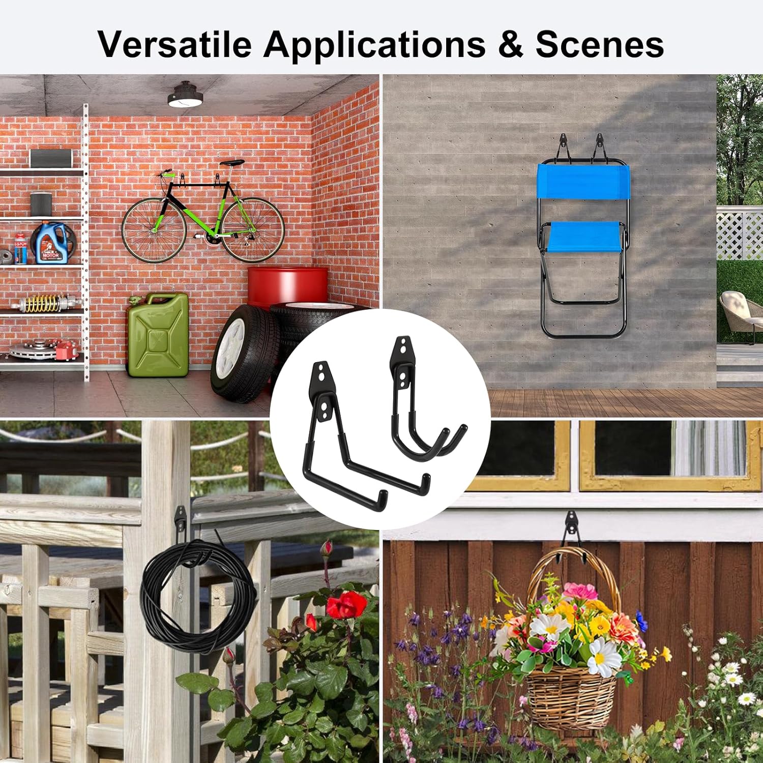 - Heavy Duty & Double-hook Design: Constructed with high-quality solid steel in dual-hook shape, these garage hanging hooks are strong, sturdy and durable enough to support heavy tools and equipment.