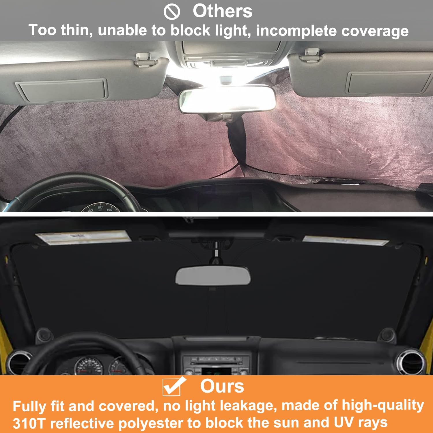 Windshield Sun Shade for Jeep Wrangler JK 2007-2018, Foldable Heat Shield with UV Protection, Custom Fit for 2/4 Door Models, Car Window Visor Accessories