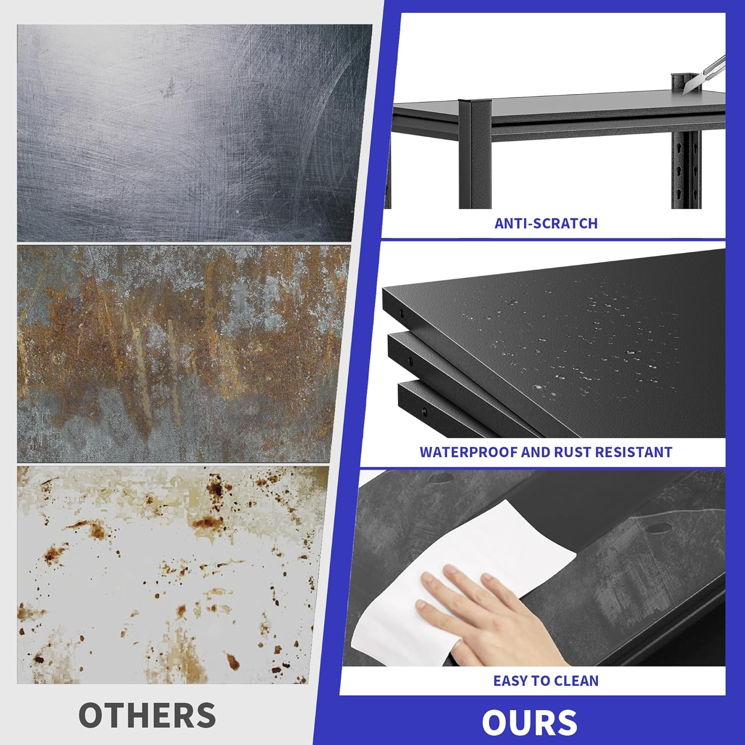 - 👉 EXTRA LARGE SIZE, SPACIOUS SPACE: The extra wide design of this garage shelf provides plenty of storage space, perfect for your storage needs whether it's in your garage, warehouse or basement.