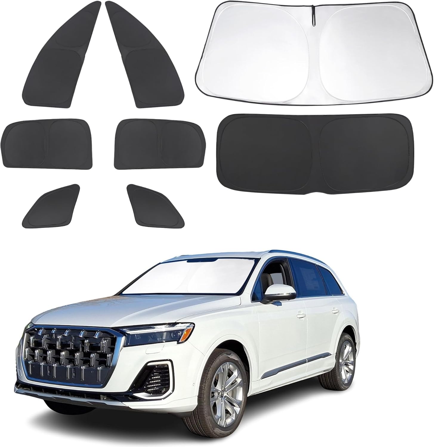 - Customized Design:The sun shade custom fit for Audi Q7 SUV 2016-2025.Our window shade is according to the car size design,perfectly fit your car and does not need to trim.windshield sun shade solve the problem of light leakage and incompatibility of the old umbrellas.The sunshade designed for Audi Q7 SUV.