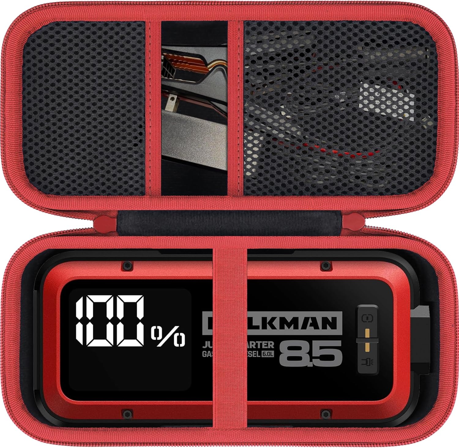 - Reasonable Storage of Jump Starter Accessories:Built-in mesh pocket can store the booster clamps of your hulkman alpha85/85s/pro jump starter, when your booster clamps and alpha85/85s/pro battery starter are put together, you can find it quickly when you need to use it.
