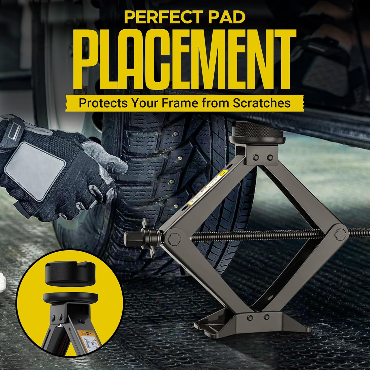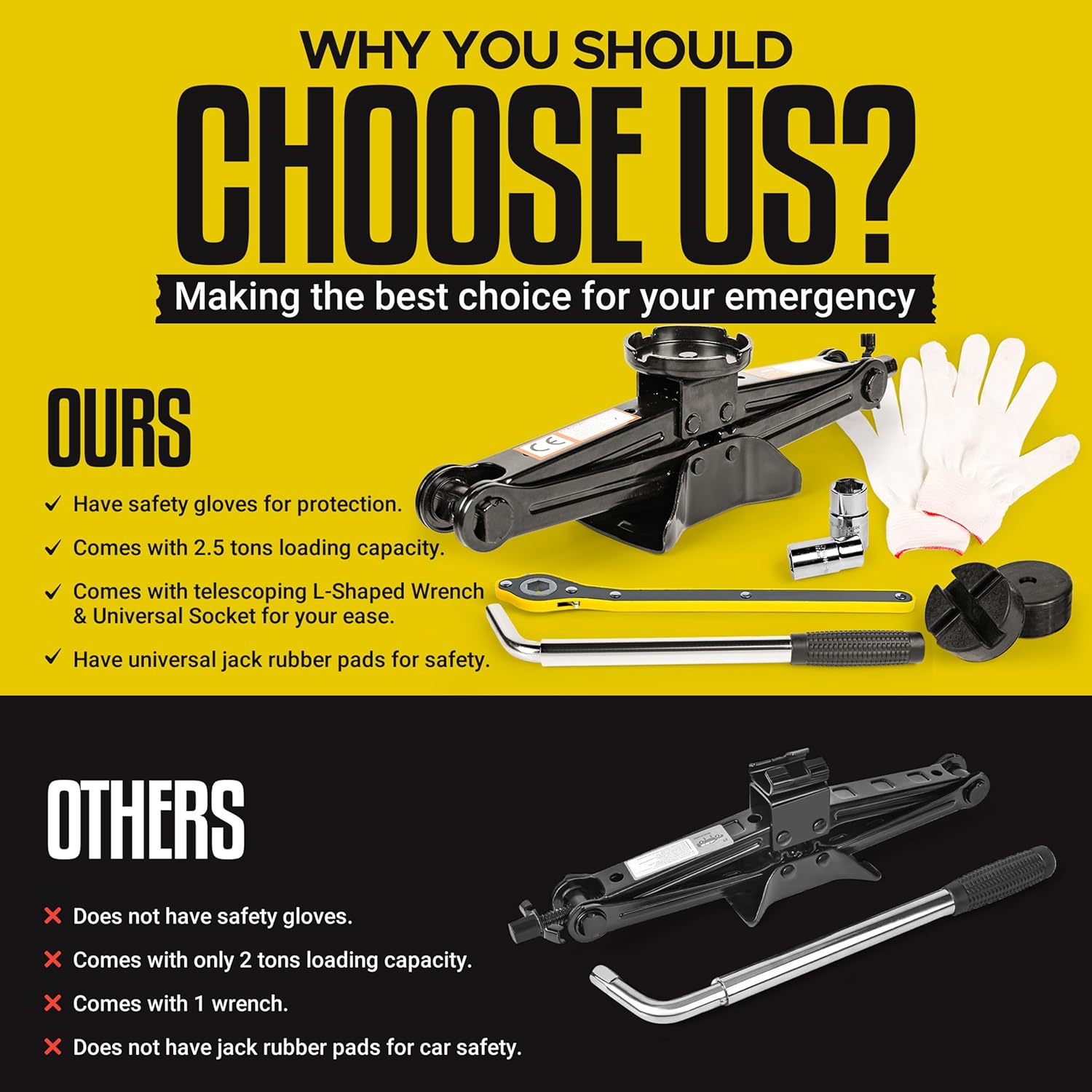 Car Jack Kit/ 2.5 Ton/5512 Pounds Universal Scissor Jack Kit with Rubber Piece, Designed for Sedan, Coupe, SUV