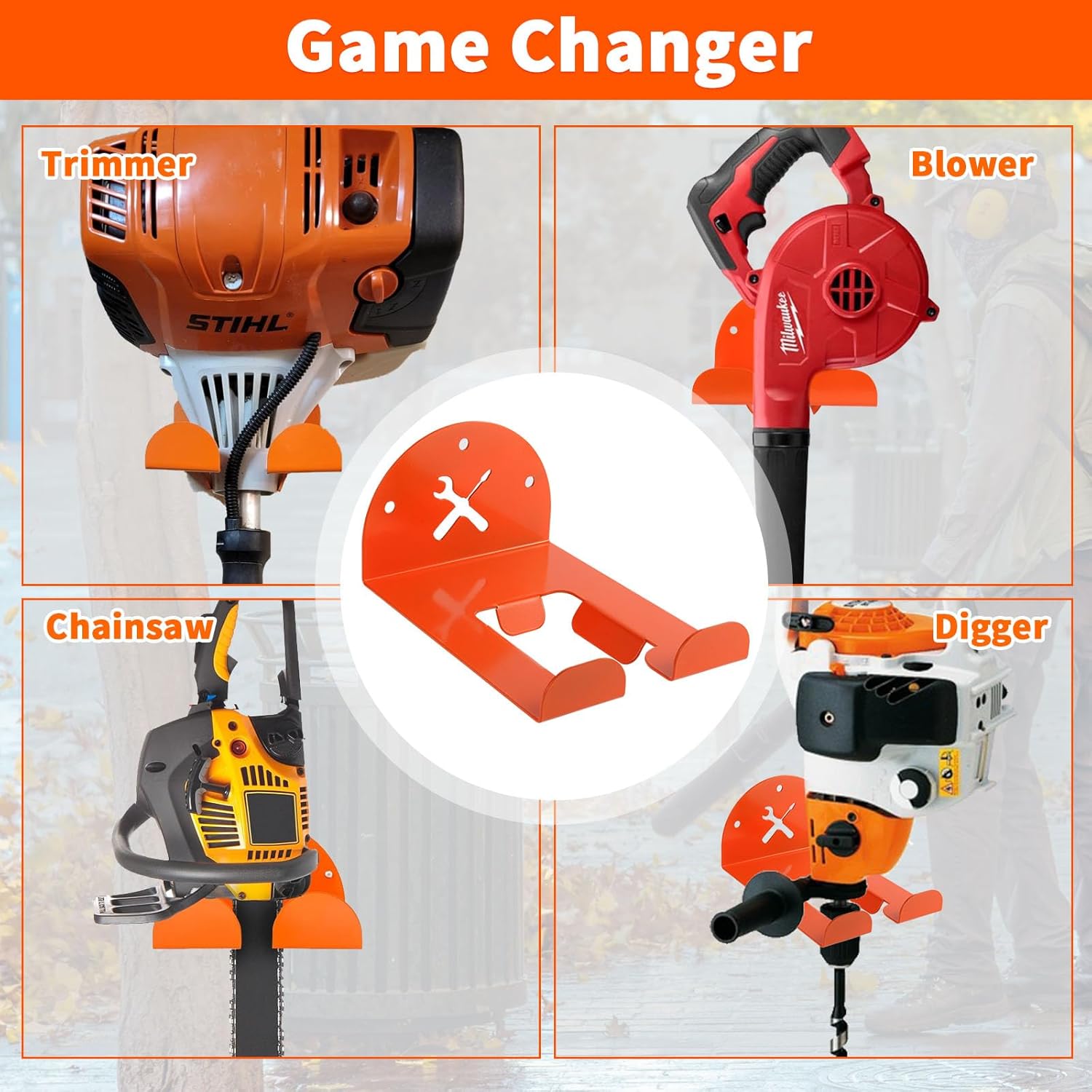 Upgraded Trimmer Rack Wall Mount - 8" Heavy Duty Weed Eater Hanger for Garage Wall Bracket, Garden Power Tool Holder Organizer Hooks for Grass Trimmer, Hedge Trimmer, Leaf Blower and Chainsaw, 4 Pack