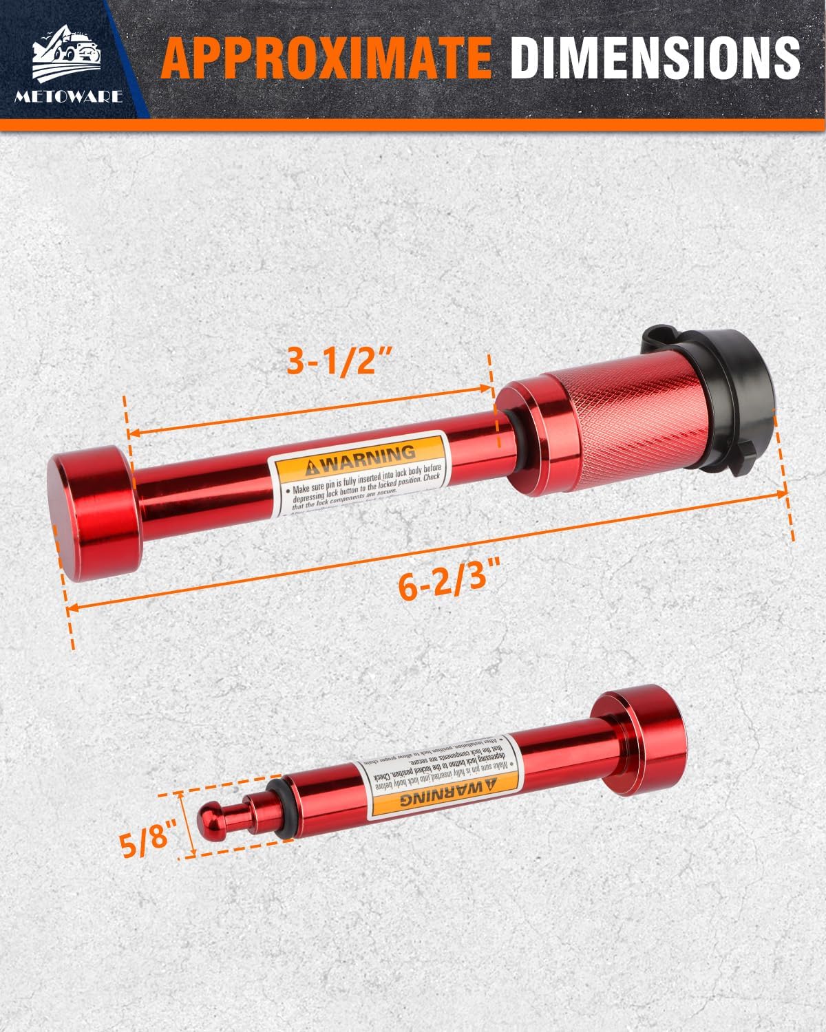 METOWARE Trailer Hitch Lock, Tailer Receiver Lock Fits Class III/IV, 2", 2-1/2" Hitch Receiver with 5/8" Dia Pin and 8 Rattle Rubber O-Rings, for Trailer, Truck, Car, Boat (Red)
