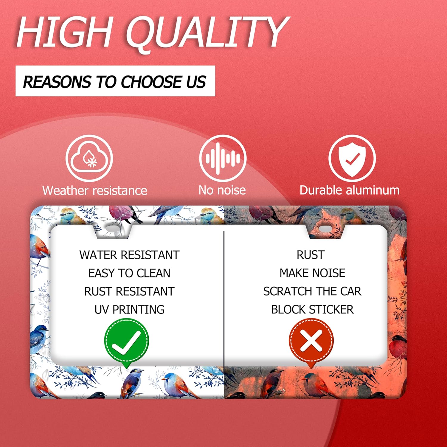 Bird License Plate Frame Funny Parrot Animal License Plate Frames Stainless Steel Accessories Cars Decor with 2 Holes and Screws Reusable Fits Standard Us Ca Vehicles License Plate Holder 12.2 X 6 in