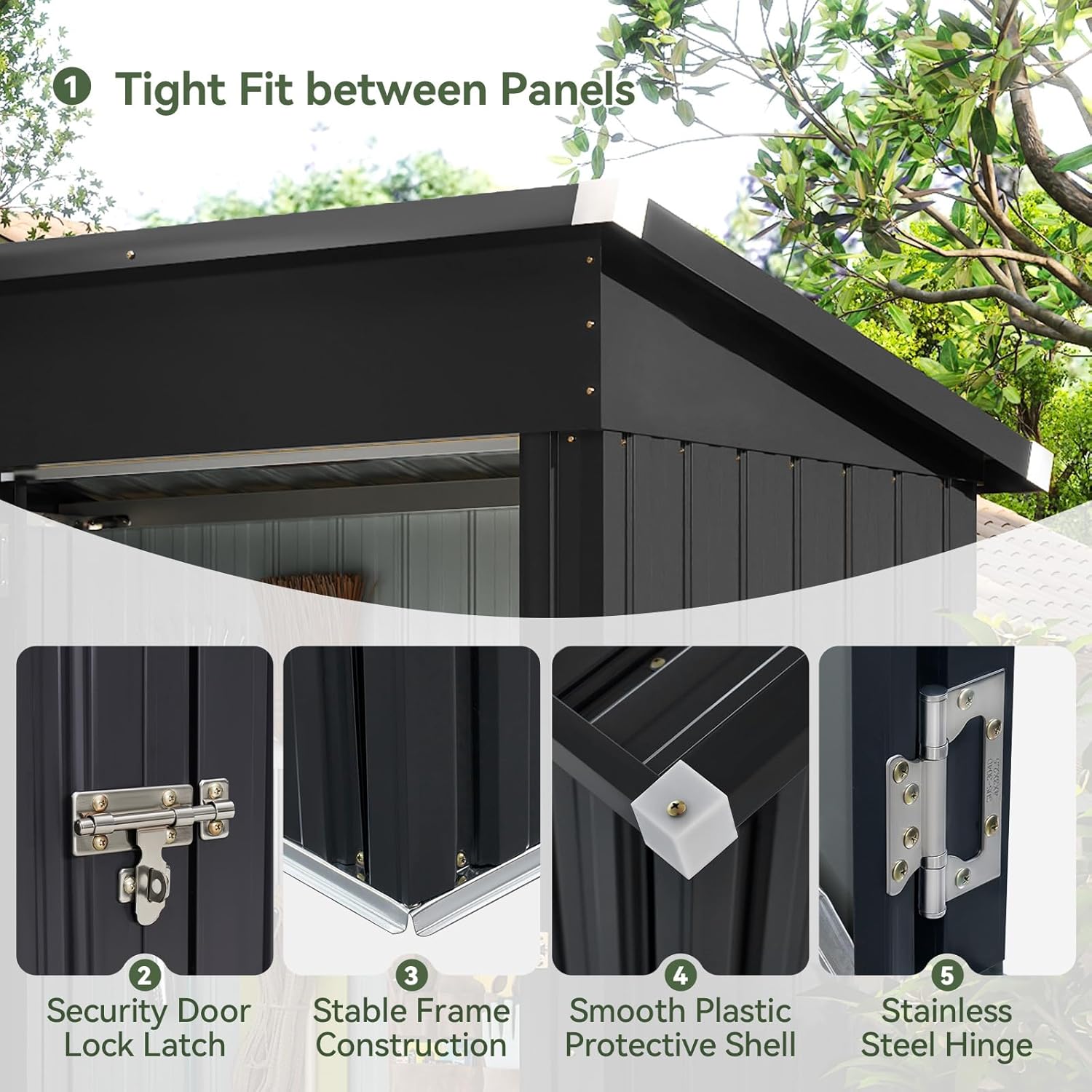 Aoxun 5x3FT Outdoor Shed Metal Storage Shed with Single Slooping Roof Lockable Door Steel Utility Tool Shed Outdoor Storage Garden Shed for Backyard Garden Patio Lawn, Black