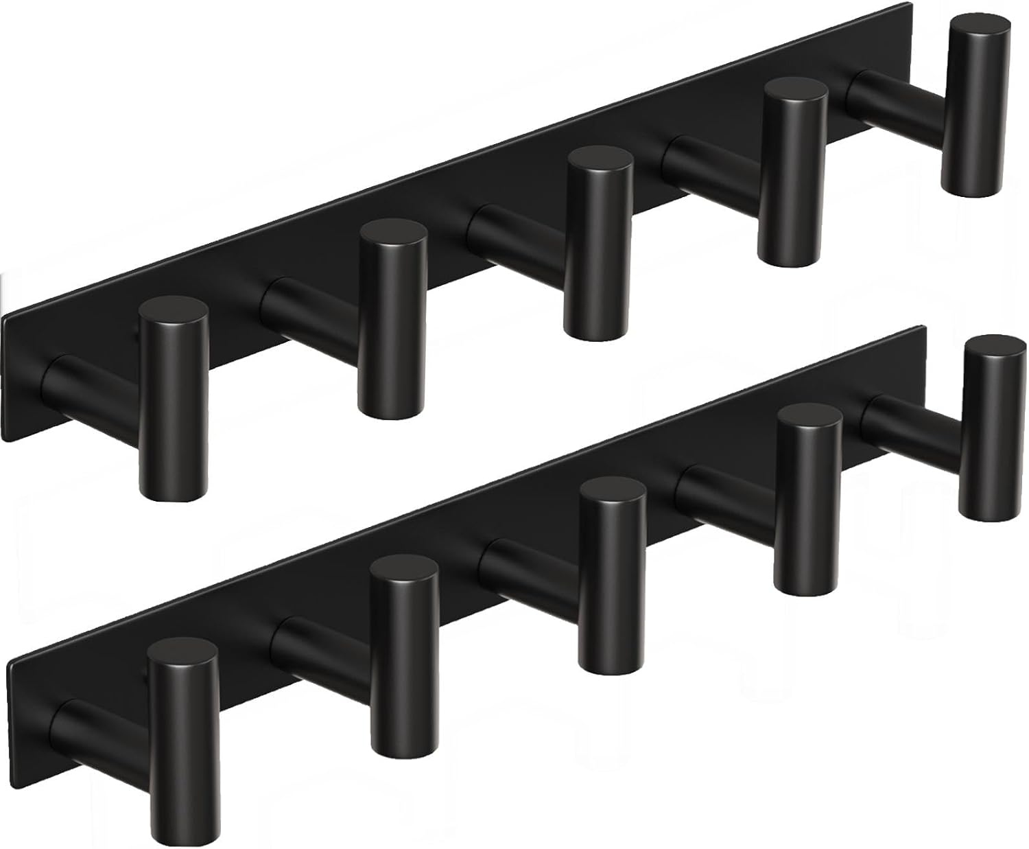 Coat Rack Wall Mounted with 5 Hooks,Metal Wall Hooks for Hanging Towel Coat Bag, Stainless Steel Coat Hooks Hat Rack Coat Hanger Towel Hooks for Entryway Bathroom Kitchen (Black, 2 Packs)
